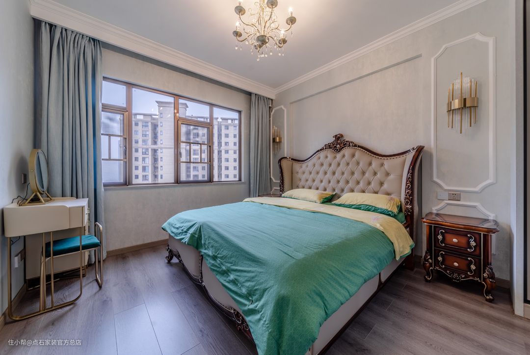 主卧区域,整体以温和、品质的视觉体现为主!在墙面材质上采用了比较温和的颜色,让整个卧室的气氛更加温和。床和床头柜的选择上也贴合了整体风格的调性。