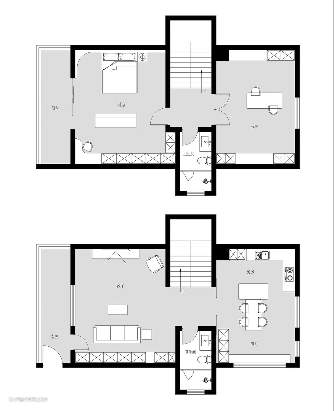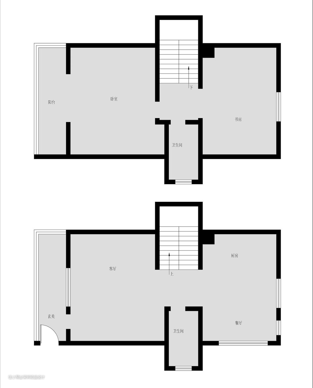 户型解析: 1、入户门做简约收纳柜,复古设计让进门仪式感满满。 2、客厅设立在一楼,方便日常待客。 3、餐厨在二楼,厨房与餐厅空间墙体拆除,空间打通为开放式设计。 4、卧室空间考虑到衣帽间的门厅原因,于是将卧室门厅位置改变,避免与衣帽间门冲突。