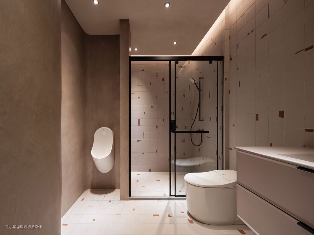 卫浴利用奶油砖+水磨石,干湿分离简洁大方,顶部射灯以及灯带形成丰富光源,悬空的浴室柜日常打理起来也很方便。#卫浴