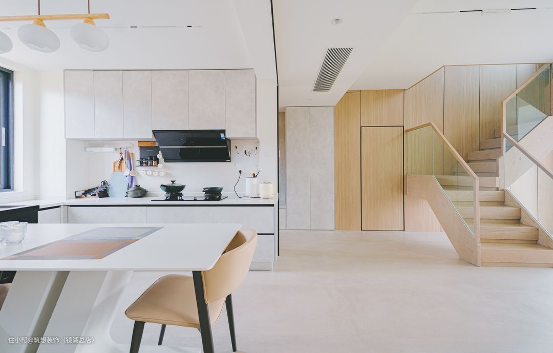 素雅极简的设计是一种生活态度的表现,也是对人生的一种感悟。干净、整洁、一尘不染,但是方寸之间却展现出处处皎洁的气息。本案设计虽说以极简、素雅著称,但每一个细节都能给人耳目一新的视觉享受。 本案业主是一位自由设计师,他美院毕业,现从事平面设计行业,同时也是一位猫咪重度爱好者,家中一共养了三只小猫咪。第一次和他讨论这套房子的设计方案时,我问:‘你想要什么?’他说:‘想要有设计感的家。在城市里的精神自留地,打开门,便进入另一种生活,要有更多的空间要留给自己最爱的小猫咪,将一楼房间作为猫舍,同时也要在要求在墙面上也要做开放式猫爬架。卧室只留一间二楼的主卧,顶部阳台的空间要留有余地,为后期改装留有空间。