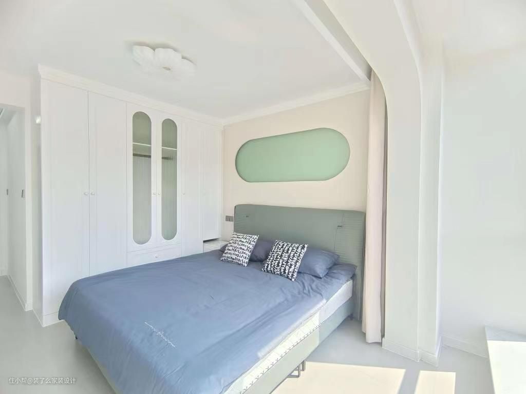 卧室是私密的休息空间,不需要过多的复杂设计。选择简约的乳胶漆墙面,搭配柔和窗帘和床品,营造出低调且静谧的质感。这样,你就能每晚都享受宁静的睡眠了!