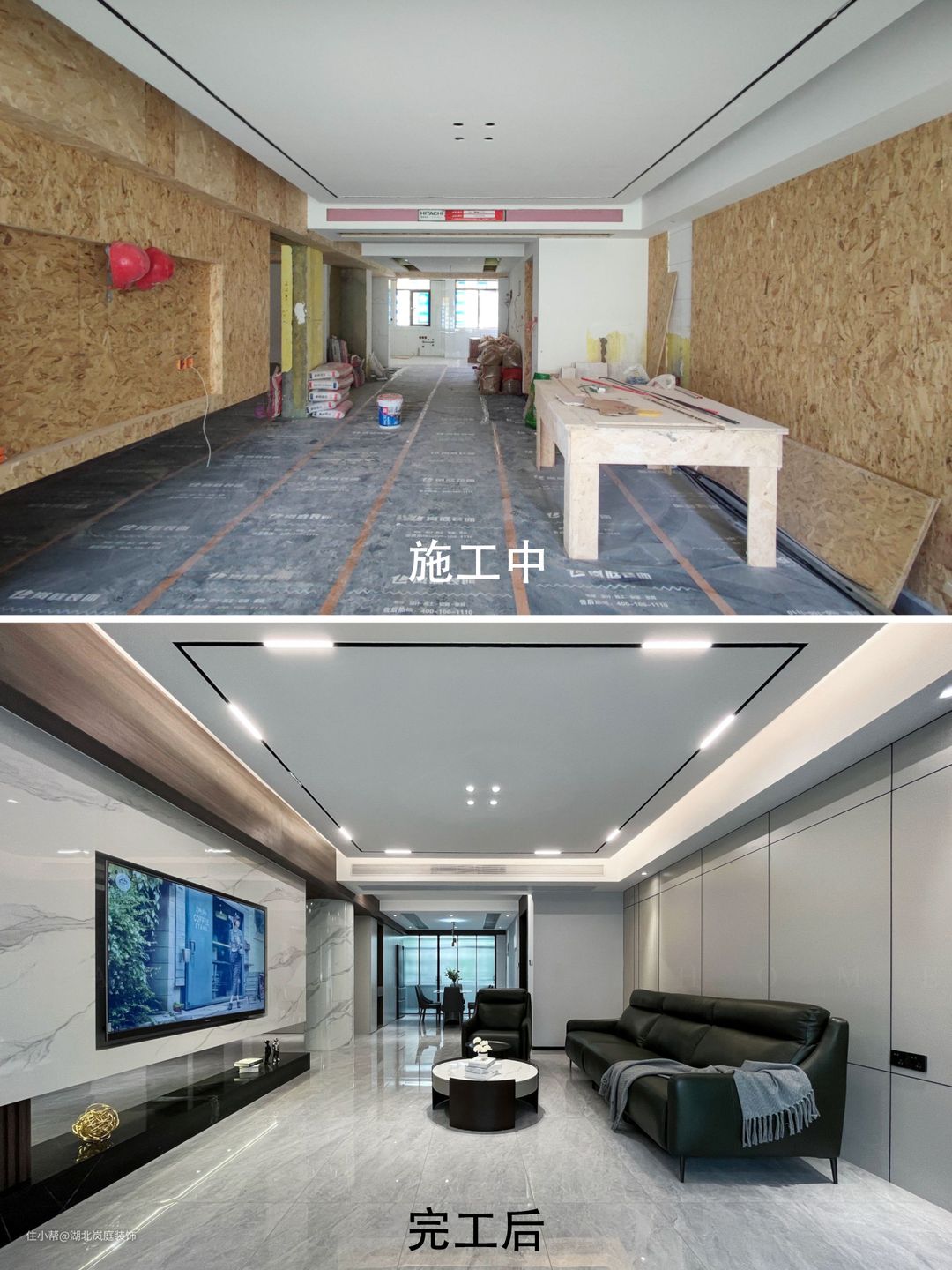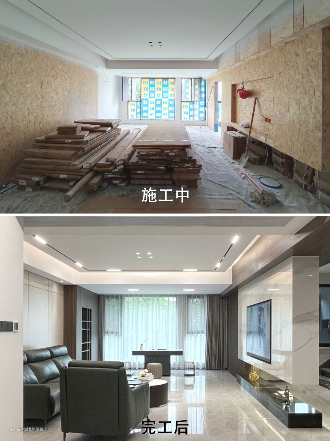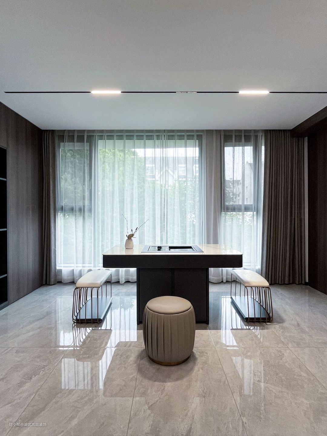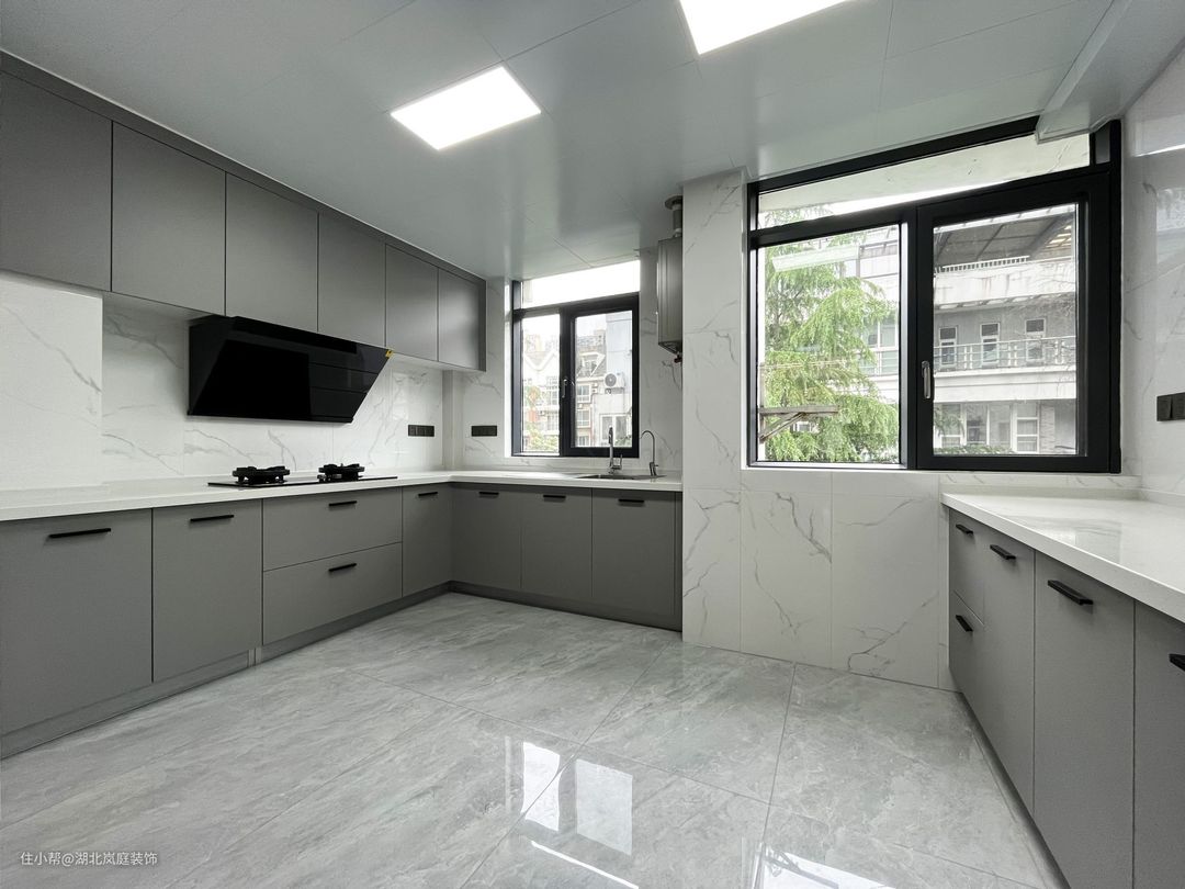黑白灰给客厅整体氛围定下基调,极简风格,精致造型;简单,但细看又有乾坤。 无主灯设计,高级有秩序;弱化横梁,没有奢侈材质装饰的背景墙,也独有自己的造型与设计感。 在灰色基调中客厅功能于视线中敞开,超大落地窗,格外适宜承载综合的客厅功能。面积足够,通透明亮,这些组合起来的每一点都显得尤为重要。 大落地窗让自然光均匀的洒落在空间之内,黑色沙发,搭配几何造型茶几,让空间弥漫出一种轻松与舒适之感。