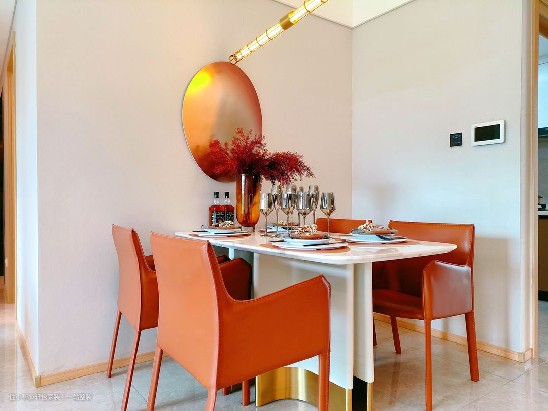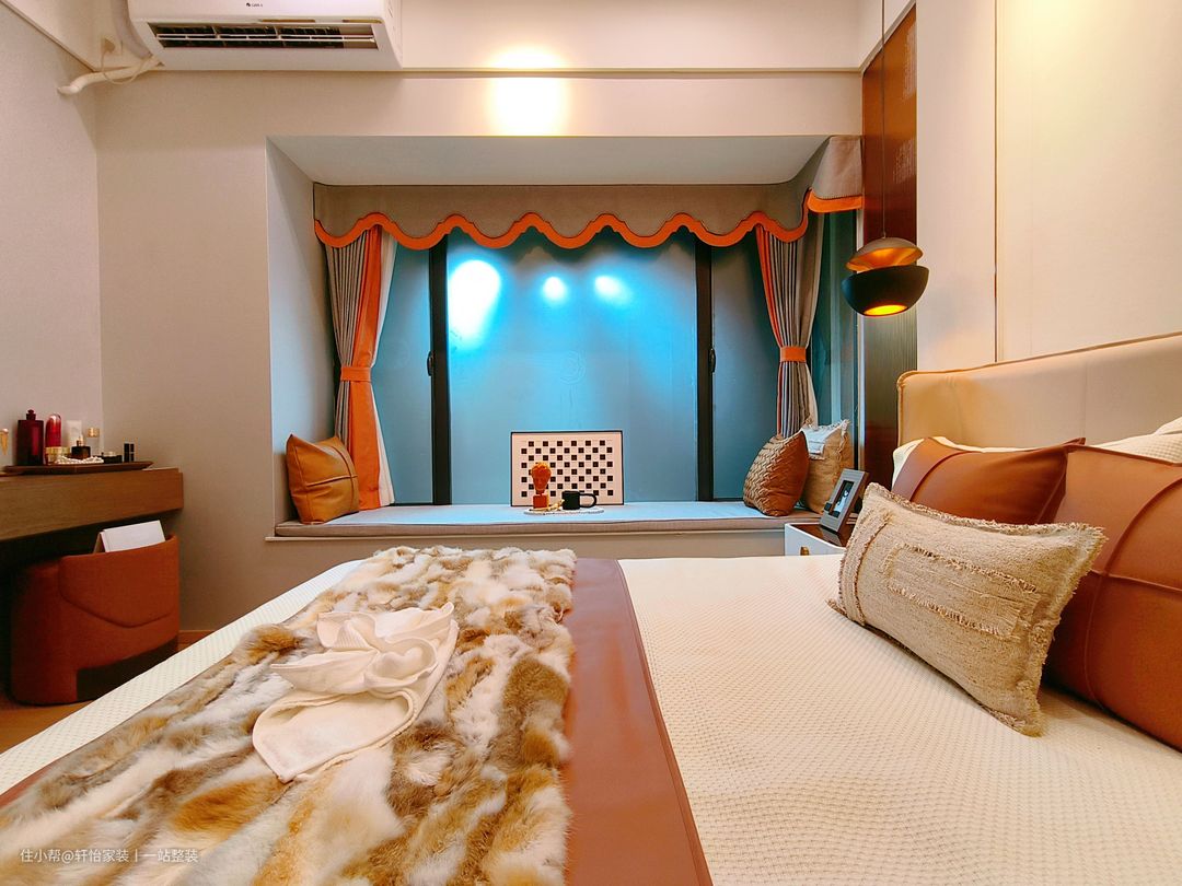 设计需求: 1、卧室空间不大,但想要更多的收纳空间; 2、希望卫生间干湿分离,考虑水汽带来的安全问题; 3、女主人的职业是服装设计师,需要一个工作间满足平时在家工作的需求; 4、家里的小男孩喜欢蓝色和宇航员,希望儿童房能满足孩子的兴趣; 设计亮点: 1、全屋以橘色为主色调,用奶白色和原木色做点缀,高级且耐看; 2、卫生间洗漱区和过道结合,形成双动线过道,洗漱池外置,充分满足主人对卫生间的需求; 3、进门处设置玄关柜厅过渡,满足户主的收纳需求, 整屋解析: 本案是一套105㎡的三居室,整体以现代舒适的硬装搭配轻奢质感的软装,营造充满优雅大气的氛围,给人以轻松自然的感受。每个空间都做独特且符合场景的配色和设计,充分考虑美观和实用,做到久居舒适,百看不厌。