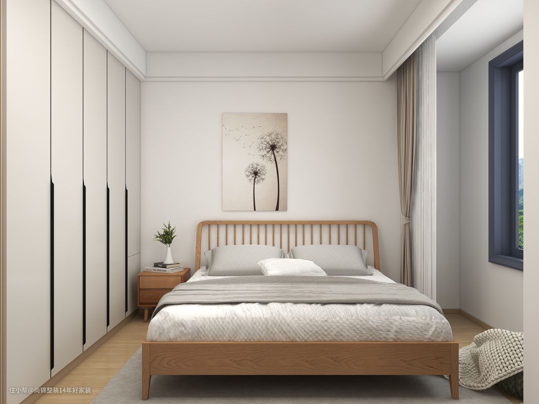 床头墙布背景加挂画