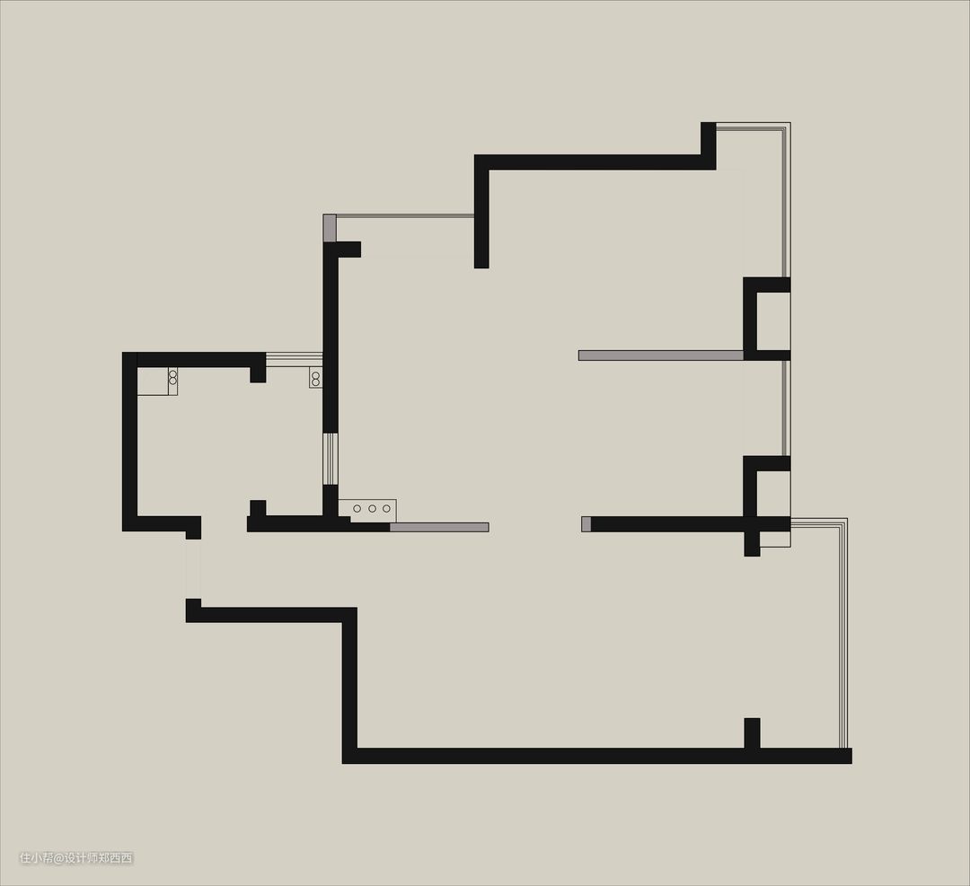 这处居所,居住的是一对年轻人,目前常住的是夫妻二人,未来会有小孩的打算,父母会偶尔过来照顾小孩。所以三个房间都需要保留,其中一个次卧作为衣帽间。 我总结了以下几点重要需求。 1、收纳希望要很能装,但其实不都是收纳衣物和鞋子,业主有大量的小盲盒和积木后期需要展示。 2、屋主二人很年轻很热情,整体空间也希望要有个性和活力,但视觉上又得平静,简化一些。 3、喜欢木地板的感觉,但还是想要铺地砖更好打理。 4、风格上原计划对日式和原木风格感兴趣,但通过充分需求沟通,挖掘出屋主真正的兴趣点为“轻法式复古” 我常对轻法式进行思考,轻法式复古的文化内容很多,它当中的设计元素一半安静一半热闹,安静的部分在日常生活中见的很多,尤其是在“高级灰”,“性冷淡”,“少即是多”这样的审美偏好盛行的当下,我们能用什么方法去表达空间热情的那一部分呢?
