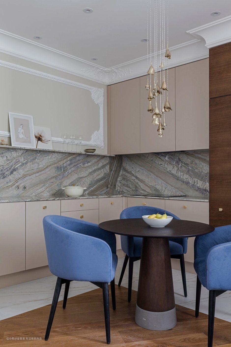 南京老房翻新 | 古典味十足的现代轻奢,浅蓝和暗金完美搭配