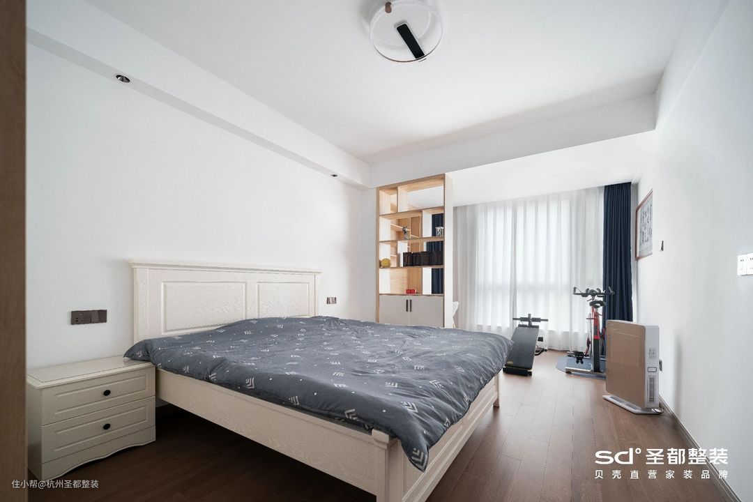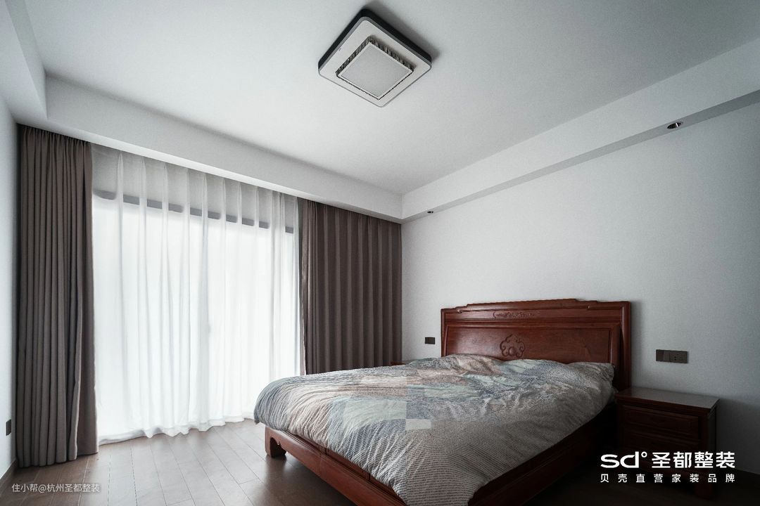 主卧并无多余装饰,凝练成一股纯粹的质感,还原出大隐隐于市的意趣和东方极简美学。