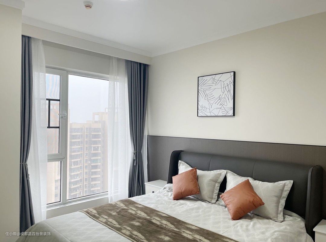 卧室的设计也比较简单,床头做了简单造型调色,营造沉稳静谧入睡氛围。
