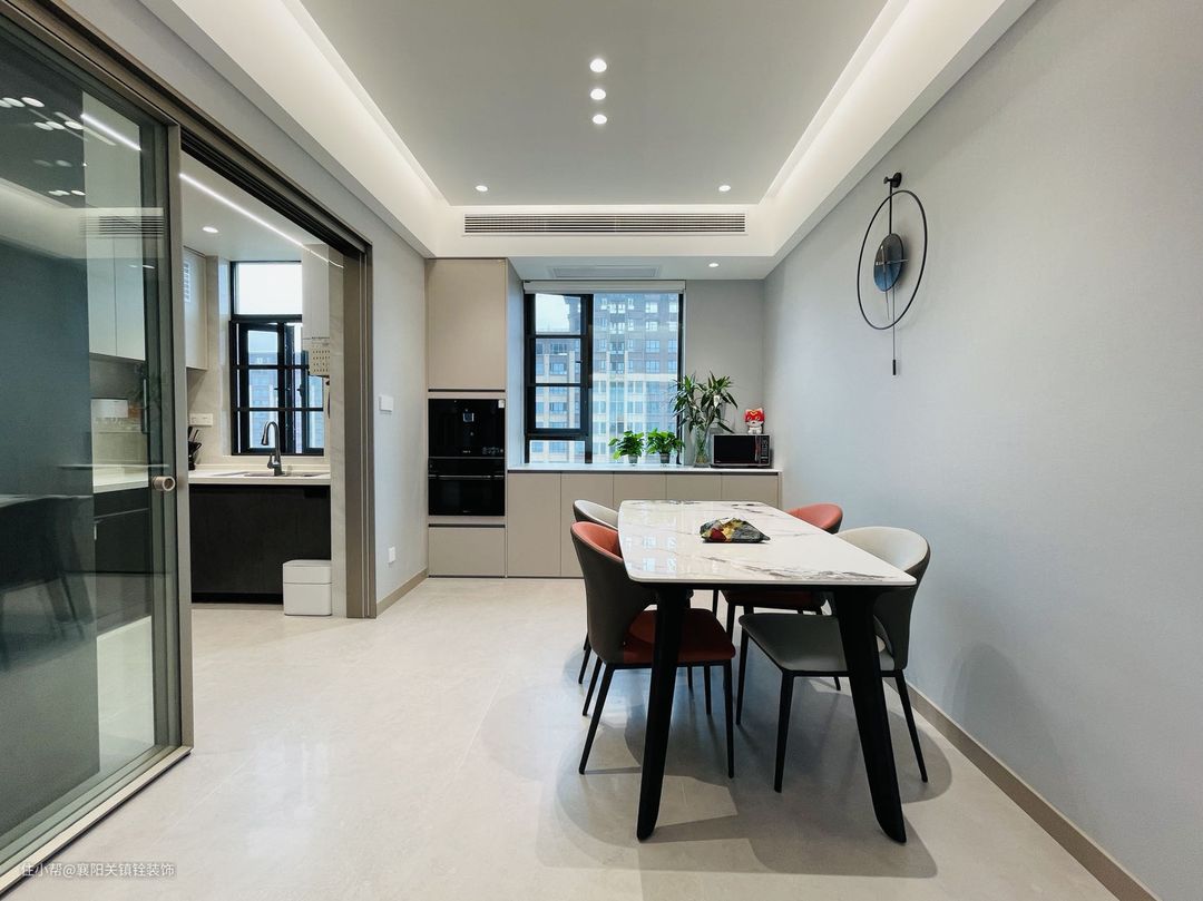 餐厅就在入户的右手边,对面就是厨房,高颜值还实用的餐边柜让餐厅干净又整洁,L型设计让采光效果更好更通透!