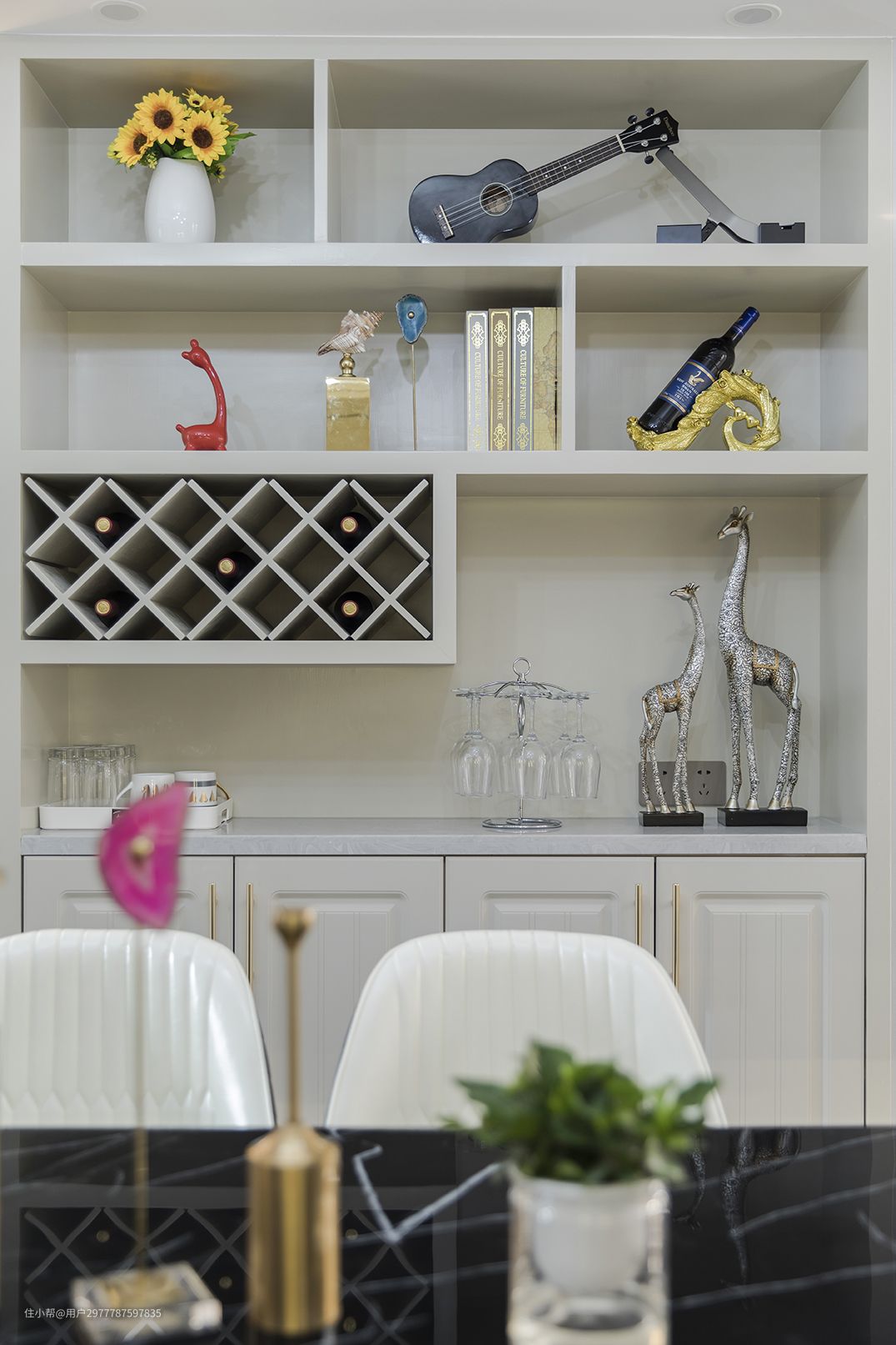 餐厅选择的是白+黄与黑的拼接,避免一种色调用到底过于单调,利用不同色调的亮色使整体具层次感。 大理石是现代家具的很大特点,餐桌、地板都有这一元素,在彰显风格的同时使得餐厅和客厅相呼应。 白色储物柜合理收纳物件,黑白皮质餐椅搭配黑白大理石餐桌更显静谧,黄色餐椅与挂画形成视觉呼应,丰富了轻奢的简练气息。