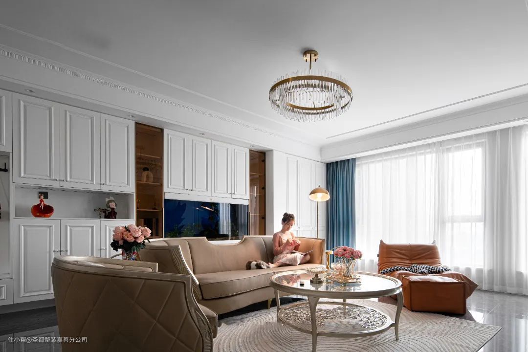 本案是幸福的一家三口,女主人是美丽善良的护士,憧憬拥有浪漫优雅的家居氛围。 整体的设计风格为法式轻奢风,在硬装上面主打简约、线条流畅,不会过于浮夸,软装方面融入不同材质元素的碰撞,来体现高贵雅致的氛围,同时关注业主的居住体验,让家居看起来更温馨实用。