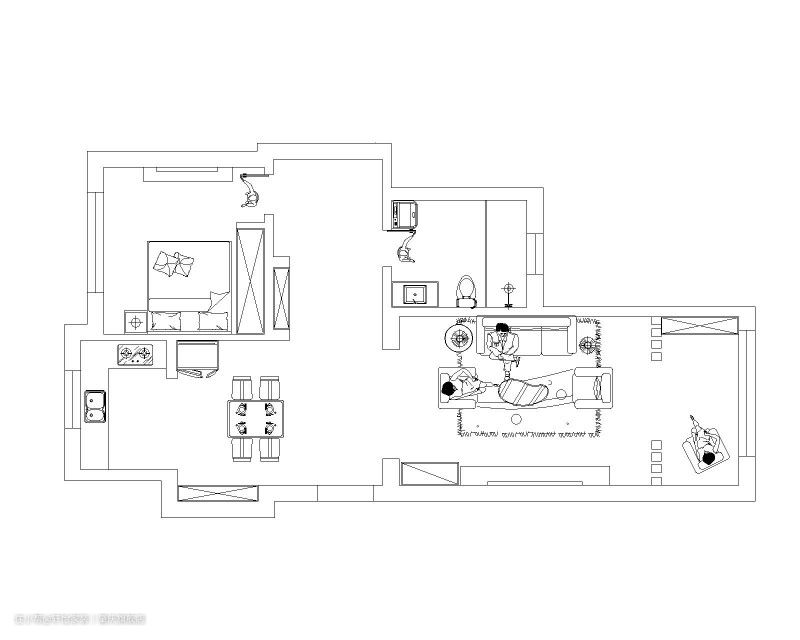 方案解析: 本案是75平的一居室,业主是一名金融女白领,居住状态是独居。75平的空间相对来说比较充裕,房子装修风格为日式原木,房屋大量采用原木材质,整个空间比较治愈简介和温和,没有过多华丽的软装,这样一片治愈美家是业主的心灵与身体所归之处,一进门就温柔得让人没脾气。 户型图: 通过户型图我们可以看出这是一套采光较好的房子,整个布局都比较流畅充裕,客餐面积较大,厨房做了较大的调整,设计成开放式厨房,流线非常顺畅,可以环顾整个家,让整个客餐厅空间看起来更加通透。