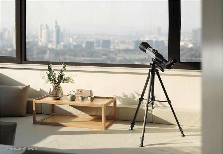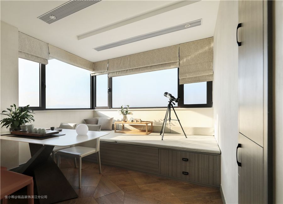 留出一间房做书房➕休闲区,临窗做飘窗柜,增加储物空间。台面上铺软垫,顺势打造成休息区,借助窗外的自然光线,在这里放空喝茶很是惬意。