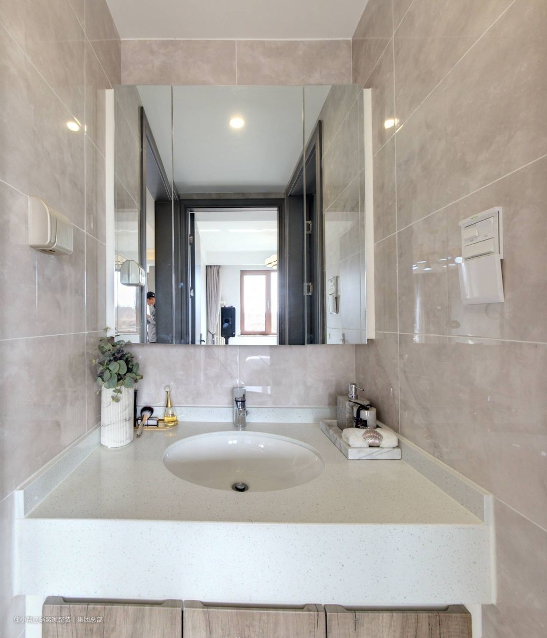 卫生间选用的镜柜,不仅满足了业主洗漱时需要照镜子的需求,还扩大了卫生间洗漱区的收纳空间。