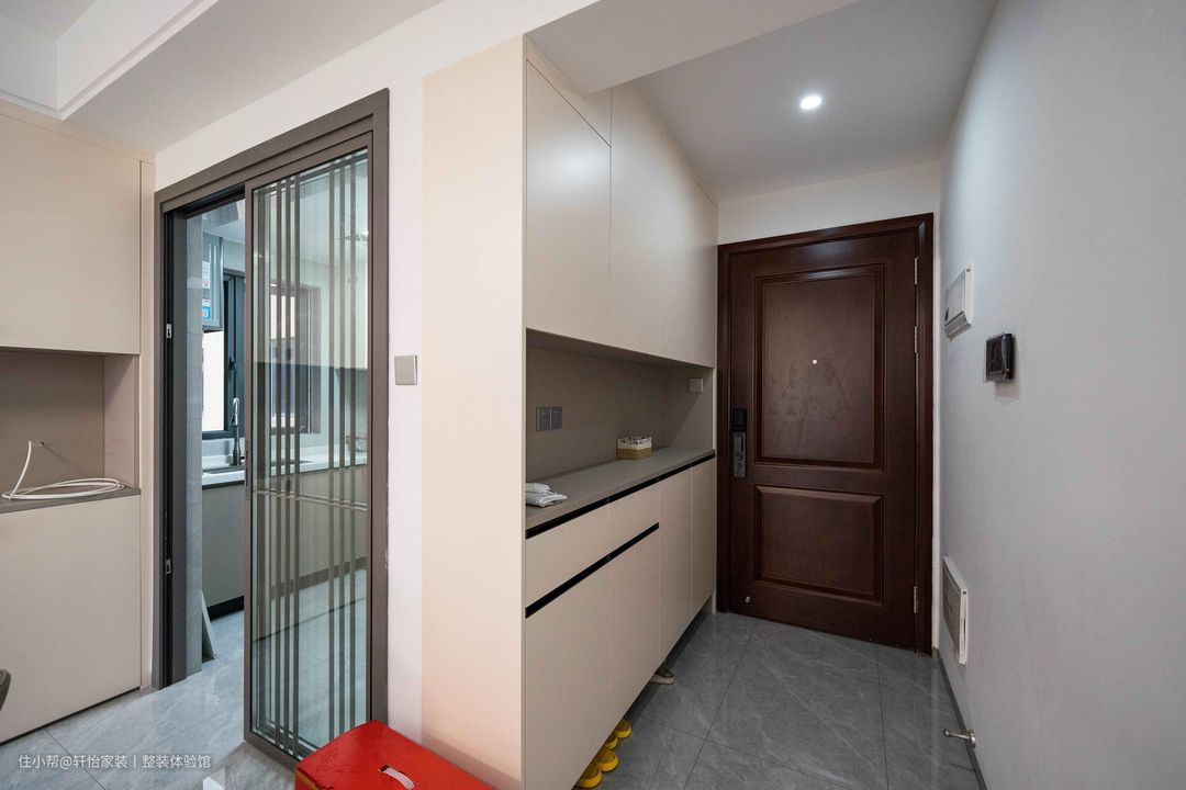可以选择一个简约而现代的筒灯,为玄关提供明亮的光线。通过这样的设计,玄关将成为一个简约而优雅的过渡空间,为进入家中的人营造出舒适和欢迎的氛围。 玄关设计中设有一个玄关橱,为进入房屋的人提供了便利的存放衣物和物品的空间。虽然玄关不算开阔,但玄关橱的设置有效利用了空间。玄关橱设计为嵌入式,玄关橱提供充足的存储空间,整理和组织衣物、鞋子和其他物品。