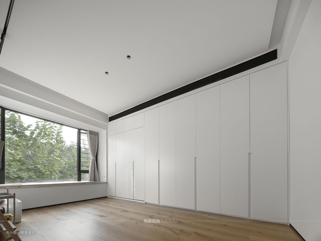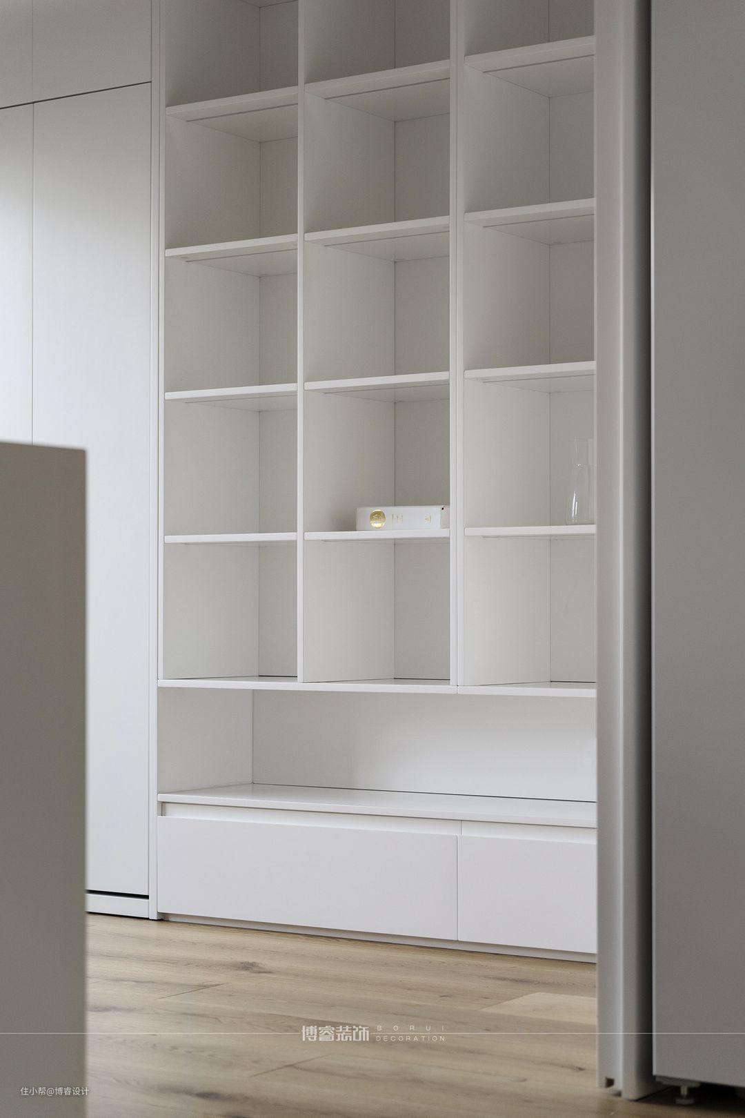 做了一面到顶的柜子,以达到视觉上扩大空间的效果。一部分设计成了墨菲床,用于临时居住,一部分做成开放格用于存放平时书籍、小孩玩具,满足日常的收纳拿取,让生活更加井然有序。