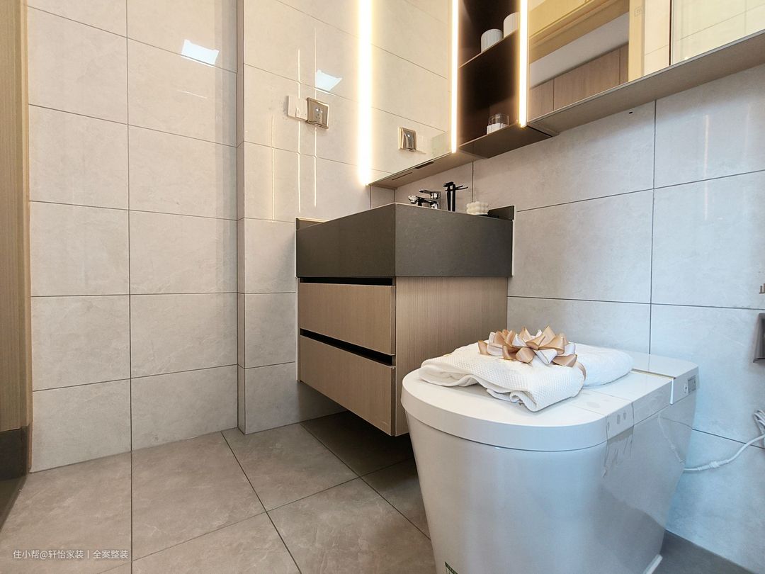厨房同样秉承大容量收纳的原则,厨房用具各归其位,储物井井有条,大面积使用白色门板,搭配白色瓷砖,更轻奢大气。嵌入式厨电设计,视觉平整美观,防尘省空间。 科学合理布局下厨更加得心应手,拿洗切煮的动线设计,提升效率,体验下厨乐趣,台面高度根据主人身高定制下厨操作不劳累,遵循人体工程学,炒菜不累手洗碗不酸腰。台下盆设计,减少卫生死角,更易清洁。 简约配色,所见之处皆为心动,化繁为简,拥有更舒适的下厨体验,强大储物空间,空间尽显整洁有序一切有模、有样、有温度。
