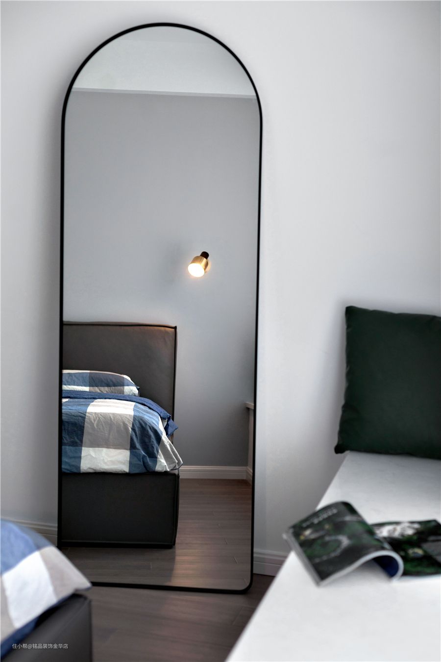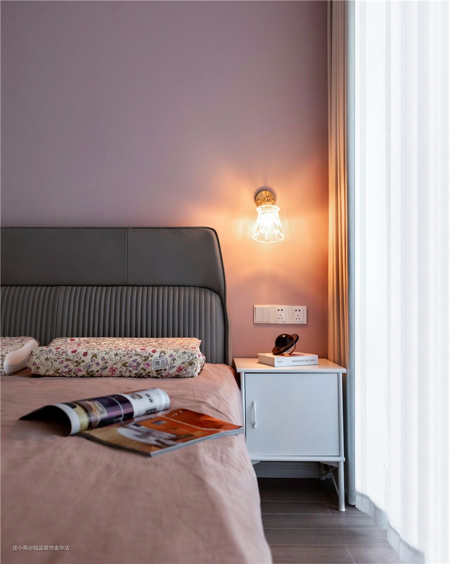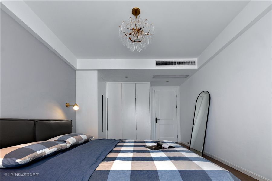床头两侧的金属壁灯,让卧室更有灰色落地皮质床,给人一种高级神秘感,在无声中把落落大方的品味铺开,带来更高层次的享受。