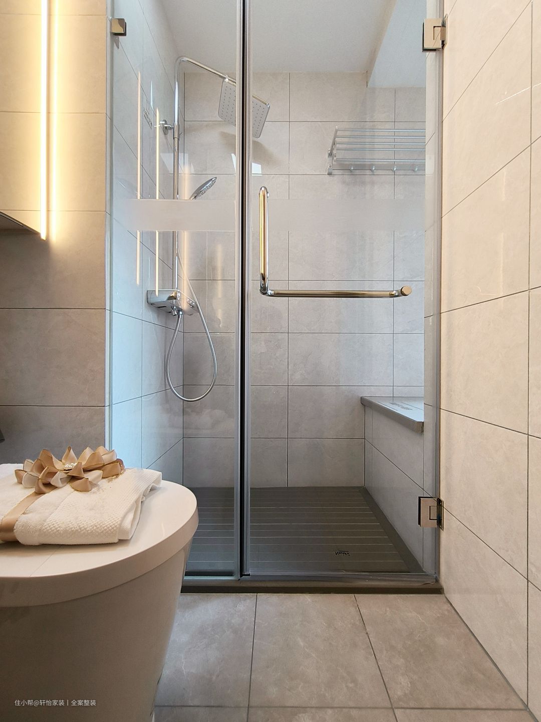 卫生间采用简约设计风格,运用大理石元素,营造出高雅而精致的氛围。墙面和地面选择光滑的大理石材质,为空间增添自然的质感。卫生间的大理石简约设计,打造出一个典雅、清爽的空间,让人感受到宁静和舒适。 颜色上以中性色调为主,如白色或浅灰色,突出简约的美感。洗手台选择简约线条的石制品,与整体风格相呼应。在储物方面,利用嵌入式柜子或石质架子,提供充足的储物空间,并保持整洁有序。