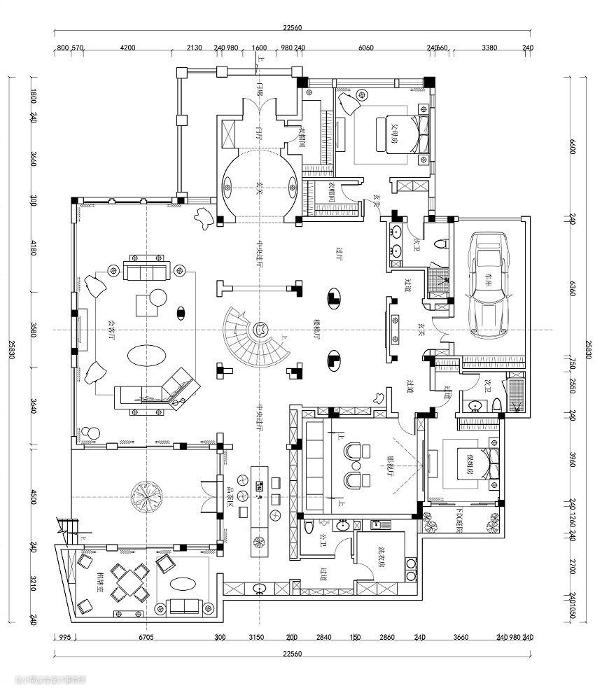 户型图依次是一层户型图/二层户型图/三层户型图 今天给大家带来的是一套来自上海市浦东新区金爵别墅的一户业主家的别墅案例,全案地面三层,总施工面积1200㎡,大理石与法式元素的碰撞,营造时光与空间的艺术调性,演绎一场法式轻奢风与现代风共融的都市生活。 屋主需求 1.屋主是一位企业家,家中常住人口四名,育有两个儿子,重视全家人的休闲娱乐空间。 2.女屋主热爱轻奢风和法式浪漫,追求家居的精致感和优雅气质。 3.屋主喜欢较大的活动空间,在整洁收纳的同时要尽量放大空间。 设计思路 1.原建筑负一层是半地下室,整个楼层的采光寥寥无几,我们通过花园泥土下挖的形式,将原本的地下室的采光全部打开,原本的地下室由此变成了真正意义上的一层,将室外的自然光引入室内,使得整个建筑空间变得更加生动。 2.把原本的楼梯拆除,通过透景的手法,将圆弧楼梯安置在了入户玄关后,整个建筑都是围绕着楼梯的形势进行发散式分布,不管身处哪个位置,这个楼梯都将会是这房子的灵魂所在,将楼梯真正做成了一处景。 3.迎合屋主审美偏好,注重简约,用简单的石膏线勾勒出简约大方的空间基调,再辅以家具装饰,突出精致高级感,简而不单,奢而不俗。 #户型图 #户型改造