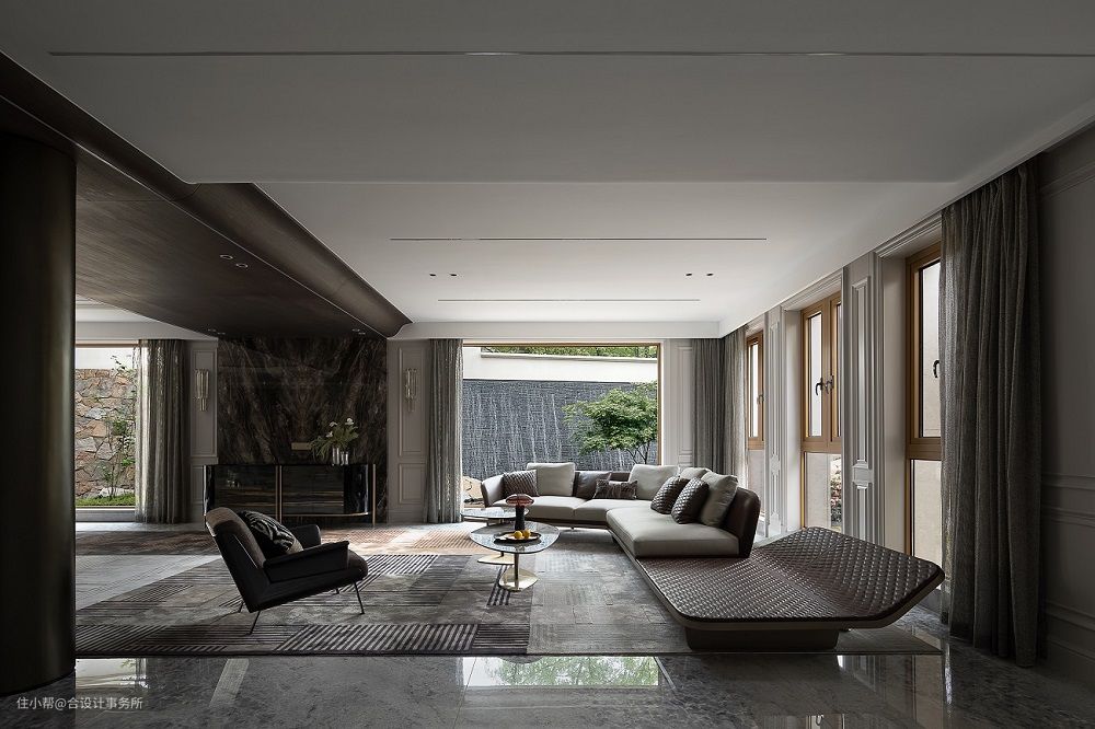 休闲区和客厅相邻,在这里你可以和朋友一起品尝咖啡,谈天说笑,欣赏落地窗外的自然美景。