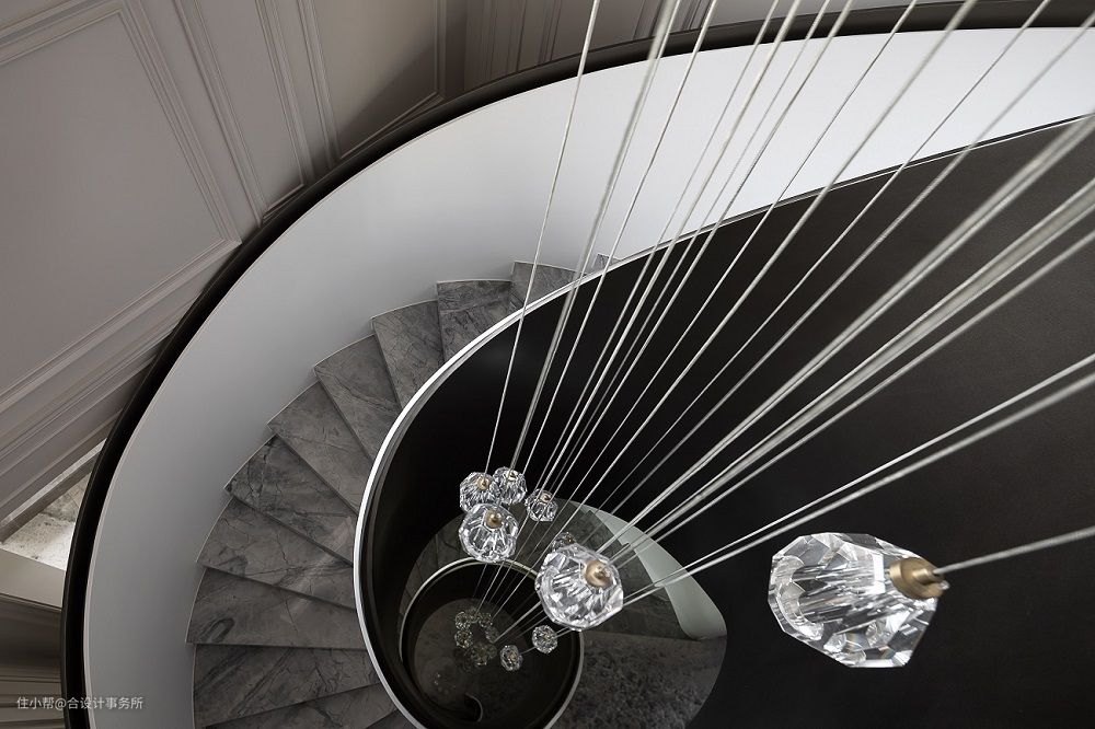 大理石踏步出场自带高级感,让整个空间瞬间提升了格调,和从吊顶自上而下的奢华吊灯相呼应,宛如一幅艺术品让人着迷。 #楼梯 #设计