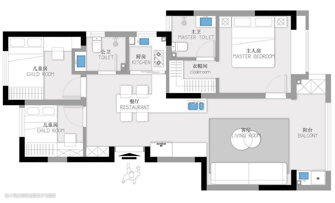 一家四口,两个男孩。 原始户型问题很多,通过结构改造91平米的户型拥有三室两卫中厨西厨还有独立的衣帽间。