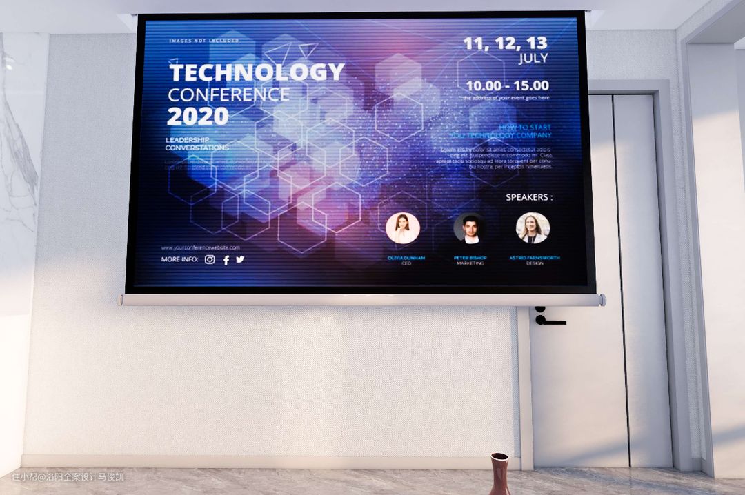 因为主卧门洞的关系装电视的话最大只可以选择55寸的,选择100寸电动投影幕布,不用的时候可以隐藏至吊顶。