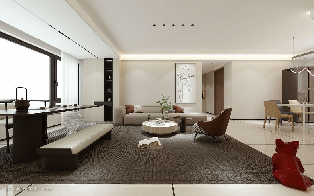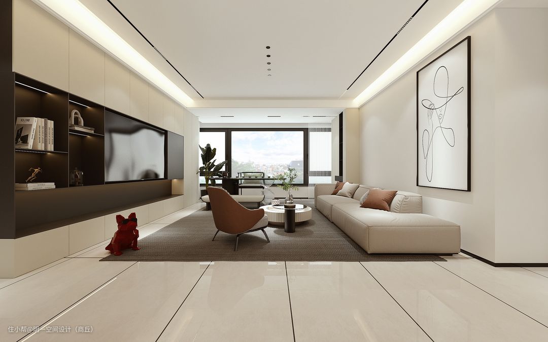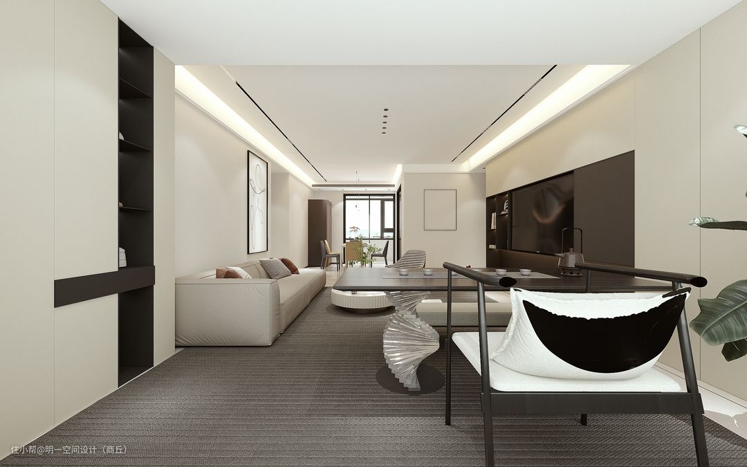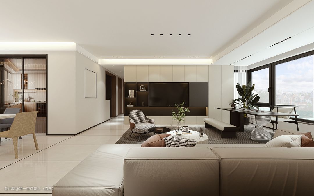 现代客厅通常采用开放式布局,将客厅与餐厅或厨房相连,创造出宽敞明亮的空间感。使用中性色调营造出干净、整洁的氛围,同时也容易与其他装饰品进行搭配。注重自然光线的利用,通过大窗户、落地窗等设计,让室内充满光线,创造出明亮的氛围。