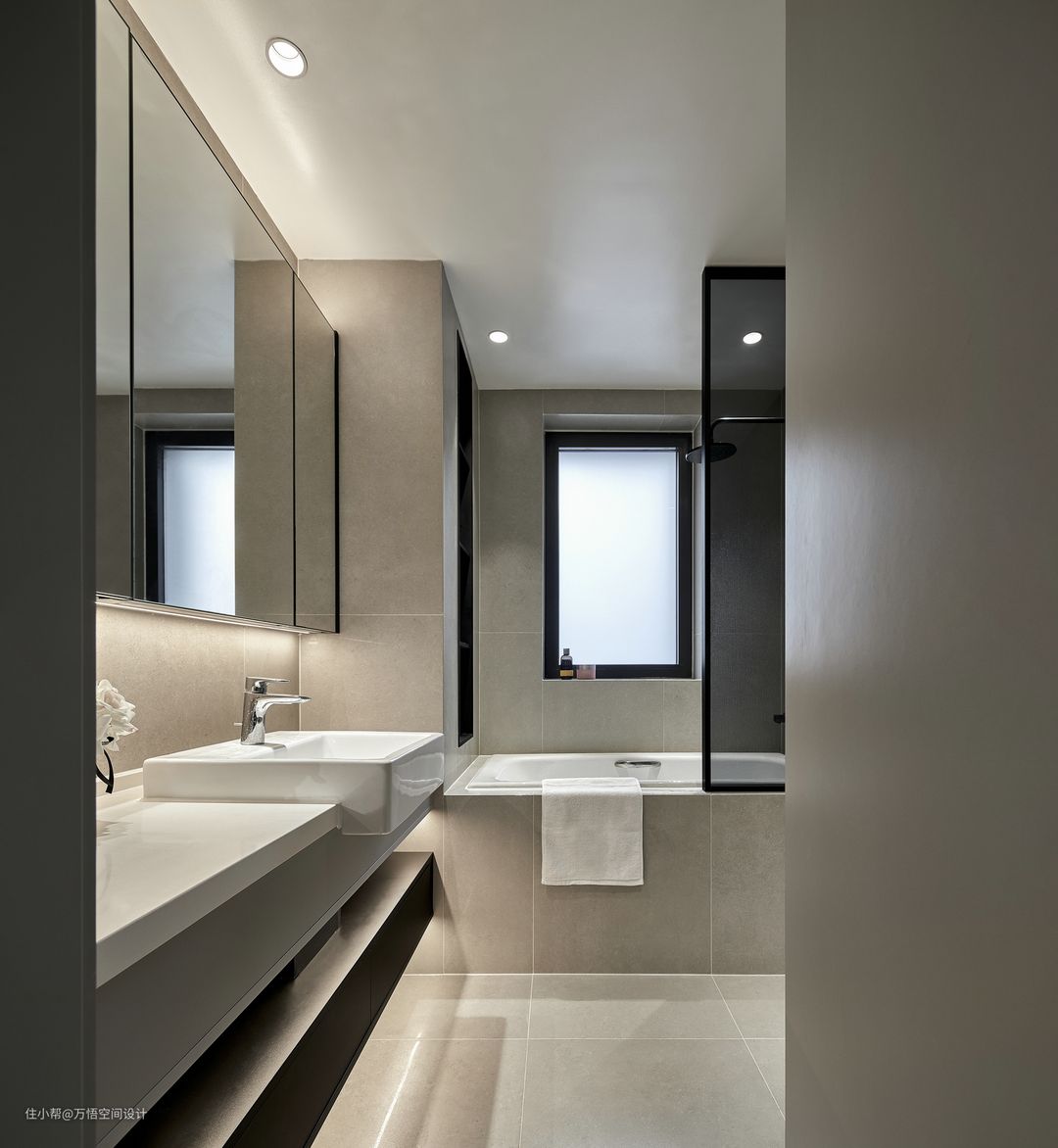 灰色石材搭配镜面&玻璃,凸显极简空间的高级