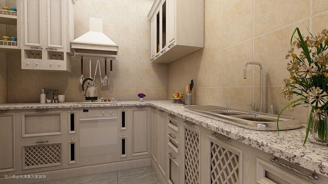 好看又实用的橱柜能提升厨房的质感以及生活的品质,整体柜子采用了缎面白色调,看起来非常简洁明亮,与银色拉手相呼应,优雅又复古。