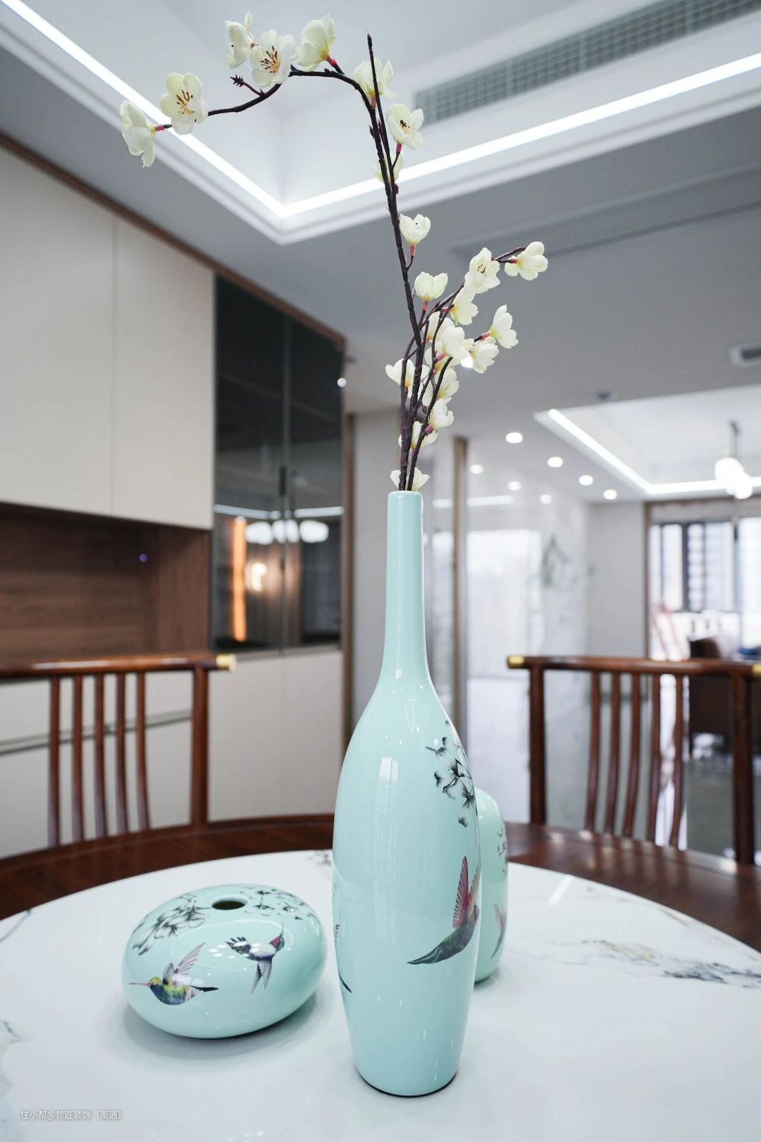 细节上的装饰也是非常用心,两个圆盘小摆件让室内空间显得更加精美,也体现了房主闲趣致远的高洁品性。