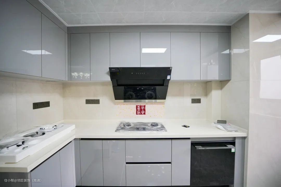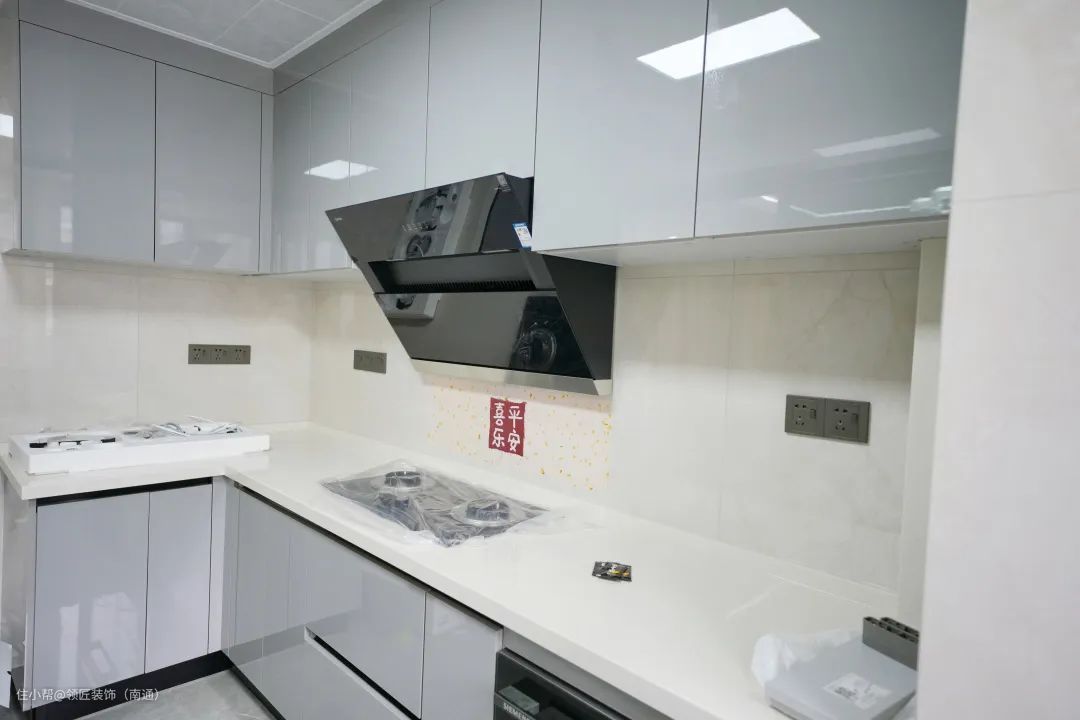 厨房强调实用性和美观兼顾。L形橱柜设计提供了更多的操作空间,以及各种嵌入式电器的应用。 不仅储物功能强大,而且更节省空间,通透明亮。