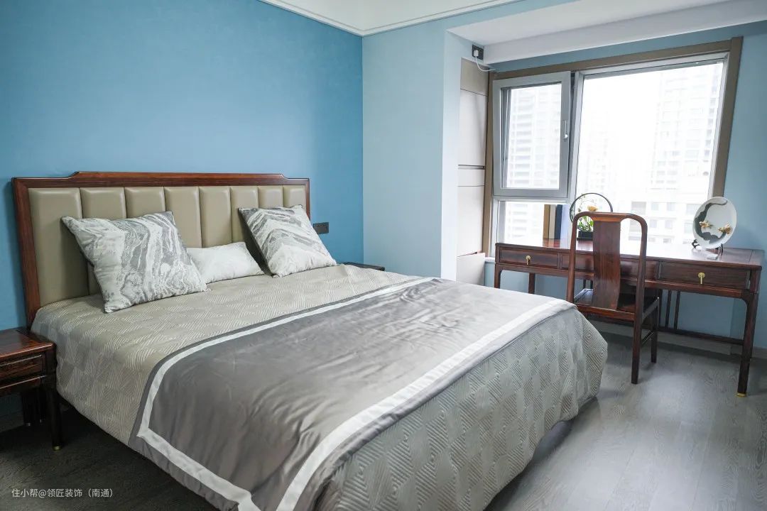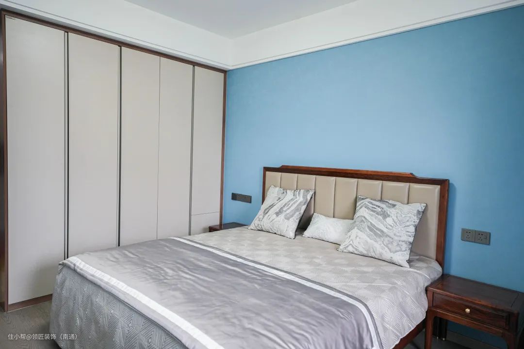 主卧空间以中式古典的元素为主,床头的中式元素恰到好处的平衡,没有繁琐的设计,也不必过多的修饰,加上实用到顶的储物功能,简直面面俱到。