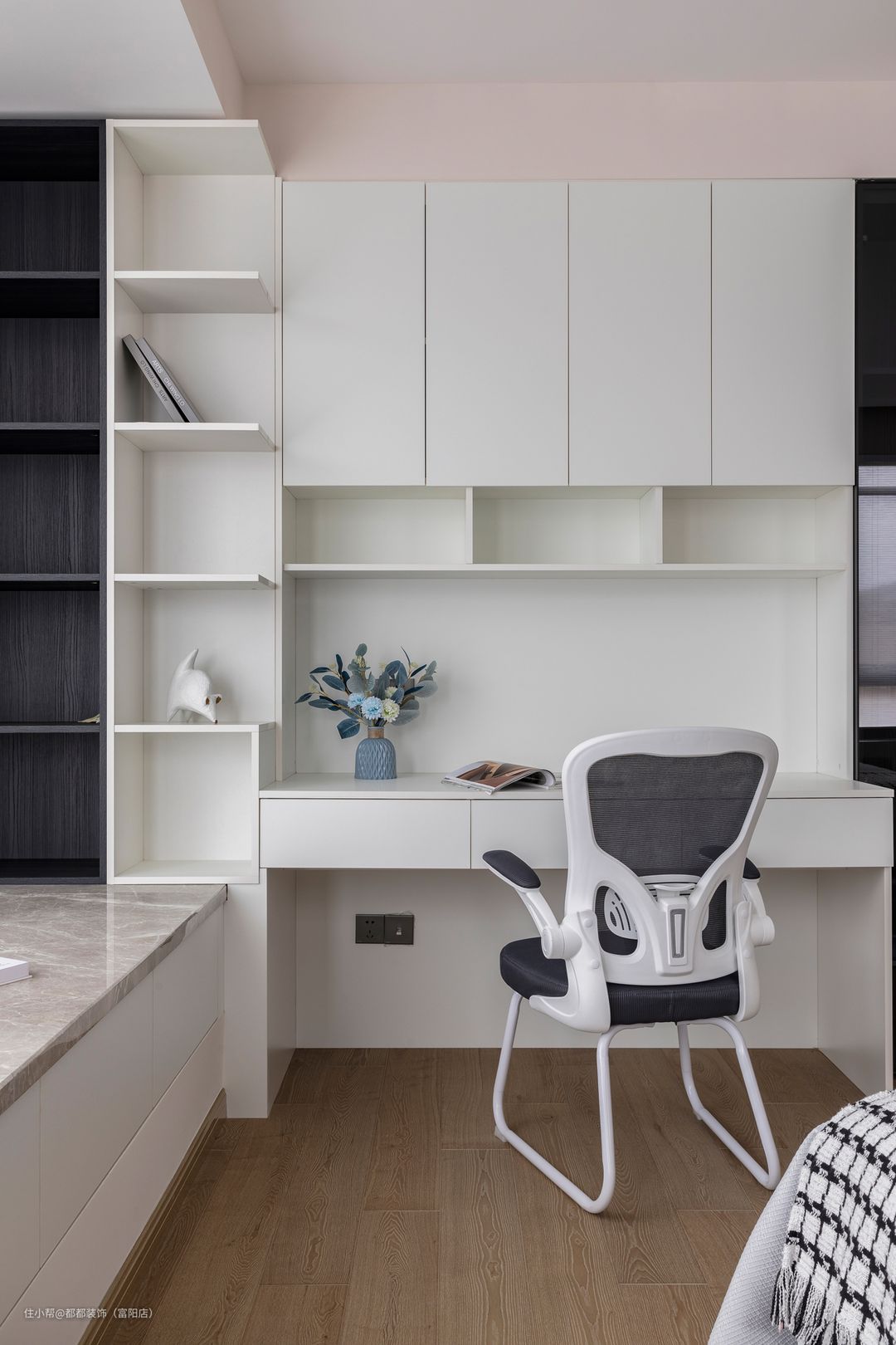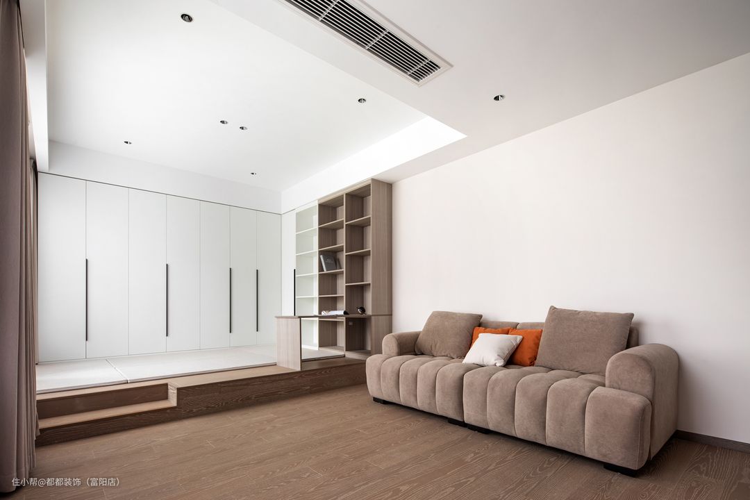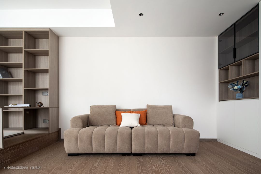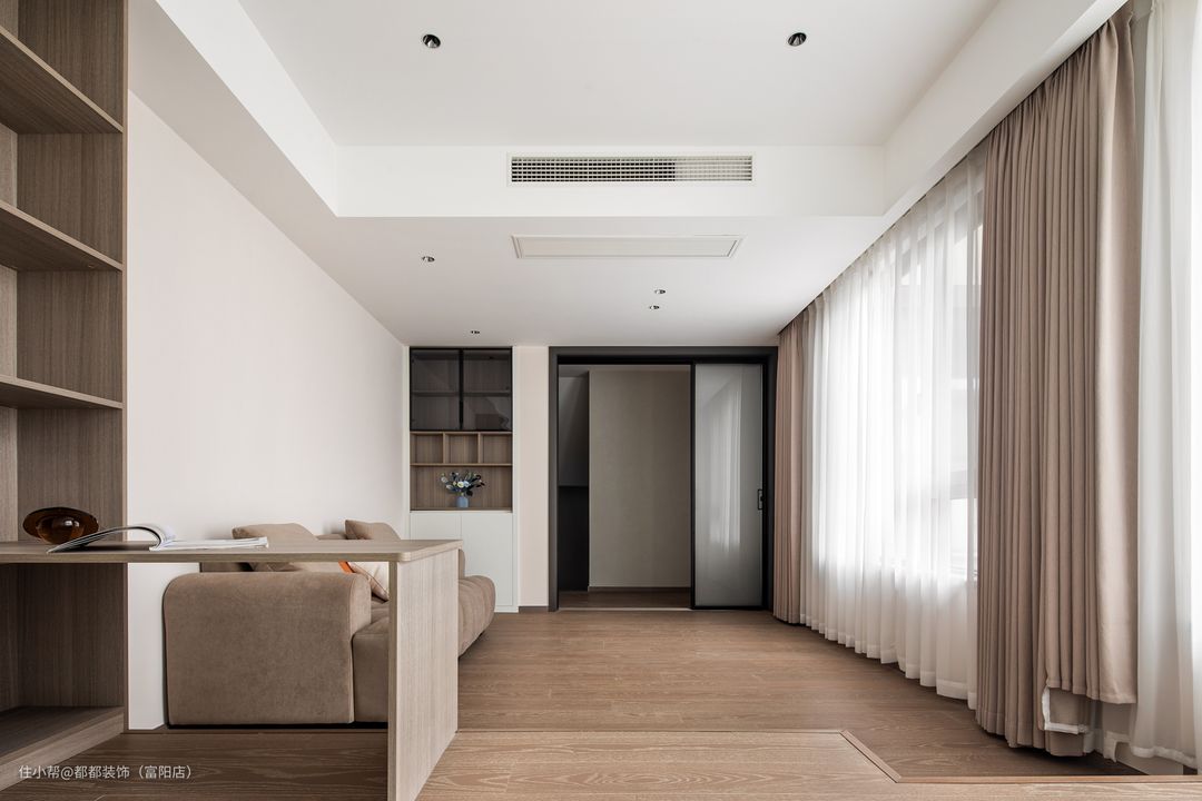 浅驼色与白色的搭配让书房无处不透着岁月静好的氛围。