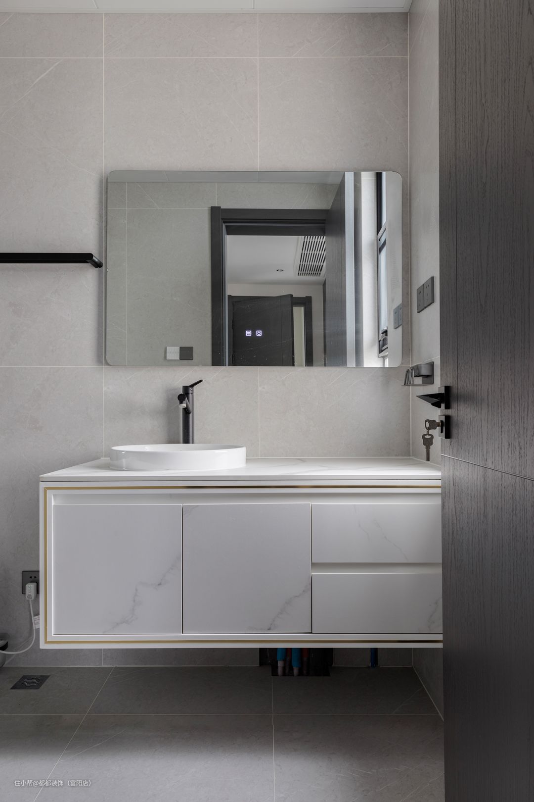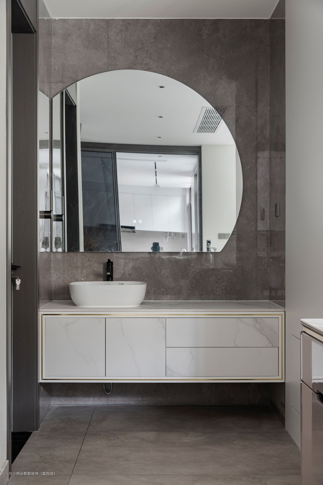 主次卫均做了干湿分离,大面积的大理石材质营造出空间的韵律感,做了大面不规则形状的镜子,洗手台外移造型优美,又不用担心水花飞溅,配以银色水龙头美观而大方,在繁忙的生活中提高了洗漱享受,淋浴区宽敞干净,使家居生活更为放松舒适。