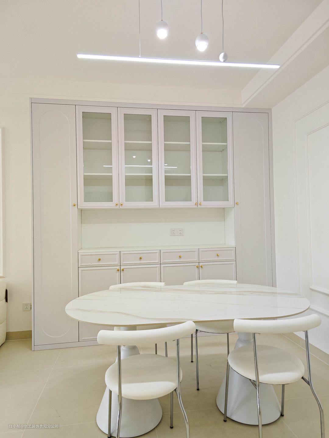 🌷 法式纯白餐厅,一张奶油色岩板餐桌来搞定~ 超喜欢法式带给人的优雅慵懒感, 仿佛坐在长椅上,凝望波光粼粼的水面, 静静看着夕阳的亮斑被落叶打散。 那就把家装成法式风吧”奶油风圣杯“餐桌🥂 🌷 岩板台面➕圣杯桌脚,带来冬雪般的纯净治愈~ ▫️▫️▫️————▫️▫️▫️ . ⚪️ 跑道形椭圆桌面, 融合长方形➕圆形桌面的优点,但比长方形桌面少尖角、更安全,比圆形桌面更适合面积较小的餐厅,出入厨房、连接客厅动线更方便。 ⚪️ 桌腿也是非常独特的圣杯造型,外观奶里奶气的,法式奶油风和极简风都能完美驾驭。 ⚪️ 质感更好的品牌岩板, 哑光岩板,更时尚。优质岩板,硬度更高、防水防断裂效果更好。 . ▫️▫️▫️————▫️▫️▫️ 🌷 法式奶油餐边柜,你们的梦中情柜~ ▫️▫️▫️————▫️▫️▫️ . ⚪️ 顶天立地的轻法式餐边柜,奶白奶白的~真的敲有质感 ⚪️ 吊柜搭配超白长虹玻璃柜门+内嵌灯光设计,空间层次感拉满 ⚪️ 左右两侧设计的是一门到顶的高柜,用来放置日常家居生活用品 ⚪️ 中间留空高645mm做置物区,预留插座,可以放些常用小家电 ⚪️ 下方地柜设计了2个大双开门储物柜+4层抽屉收纳区√ ⚪️ 极窄法式造型门型,搭配五金柜门拉手,精致感一整个拿捏 . ▫️▫️▫️————▫️▫️▫️