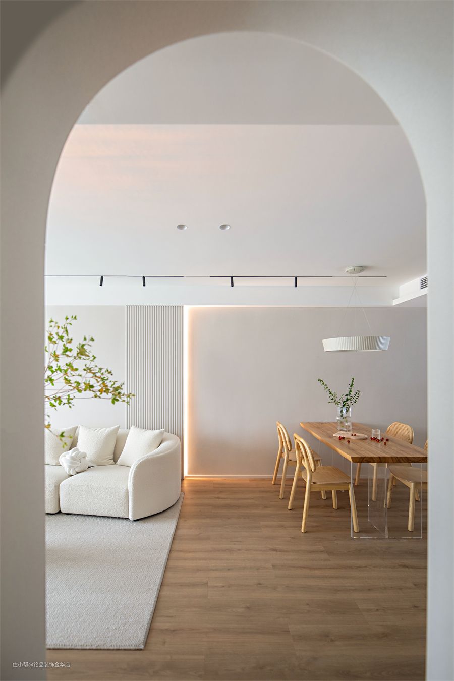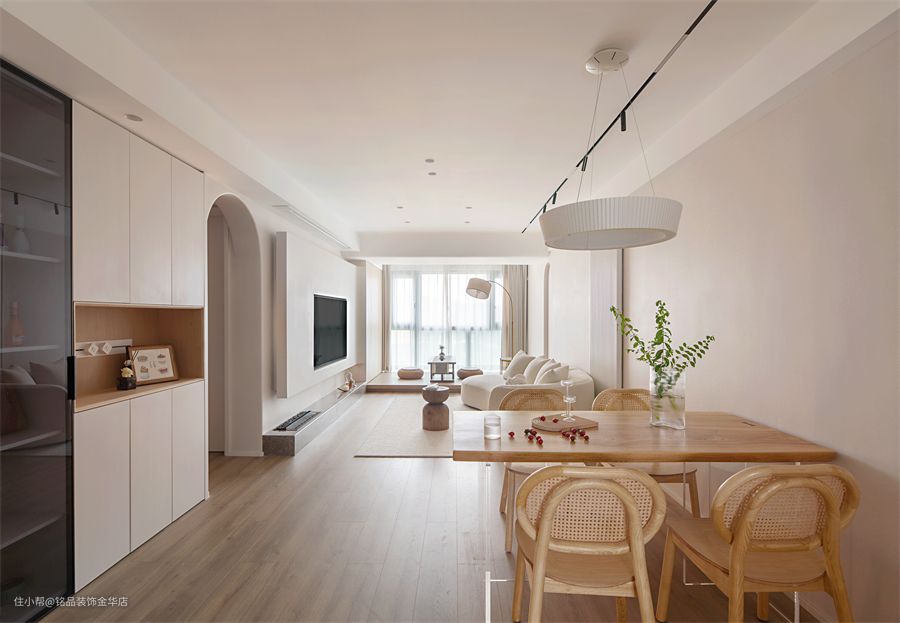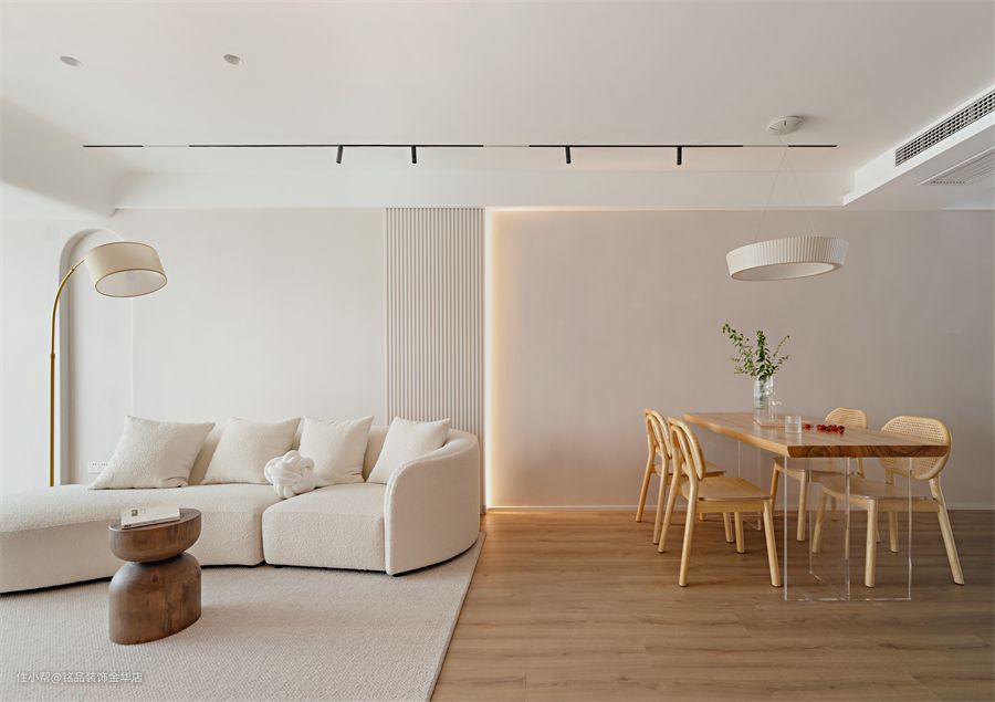 项目地址 / Address:融信学院府 设计施工 / Co :铭品装饰 风格 | Style:现代 项目面积 | Area:96㎡ 喜好与有趣小事:第一次跟姜女士沟通过后,就了解到了姜女士对设计的要求很高,希望能够看到一些新颖的设计方案,而且没有太多刻板的要求,接受度也很大。整体以暖色白色为主,在局部增加了原木色的点缀,让整体空间极简而不失温度。