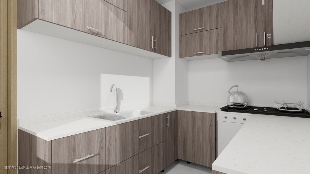 l型厨房的设计,可以满足更多的储物功能,能把一些散落的物品收纳到柜子里,干净整洁美观。