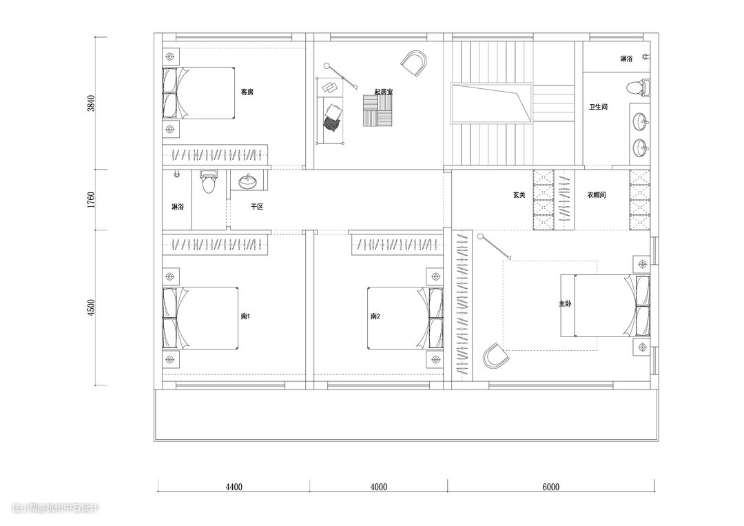 1、玄关位于客厅和卧室中间空间,封闭后没有直接的自然采光,我们设计了开放式玄关。 2、一楼只有一个卫生间,利用公共区域增加客卫台盆区,进行了干湿分区。 3、主卧设计了一个衣帽间,解决了卫生间门直对床问题,同时改善主卧狭长布局。 4、规划设计加入华为全屋智能1+2+N解决方案,紧跟智能家居趋势,打造高品质的居住环境。