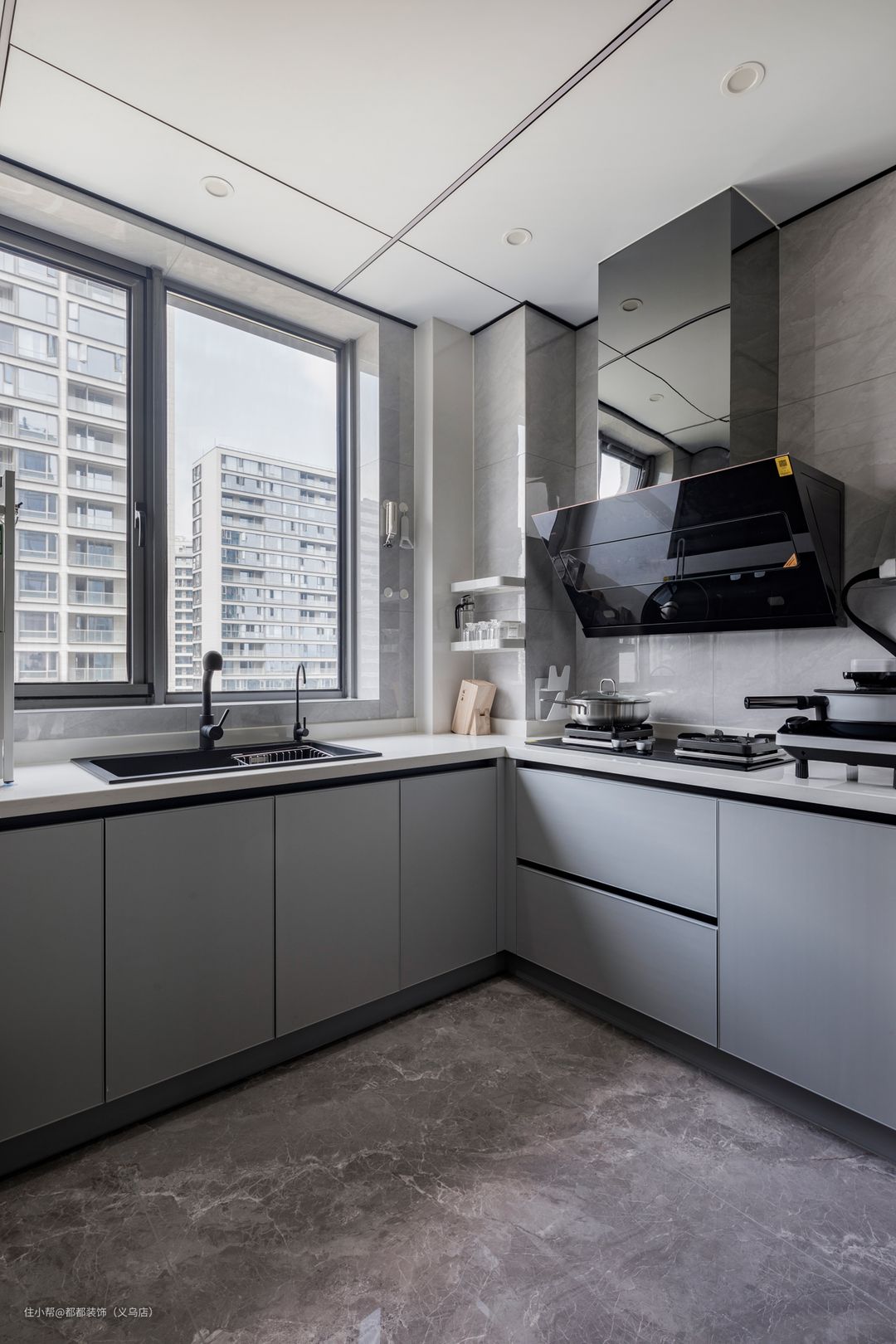 平时钱女士喜欢阅读,专门在厨房门口两侧设计了内嵌灯带的书柜,方便放置书本和杂物,可以保证日常的阅读,悠闲又自在。 钱女士一家人喜欢吃川菜,经常在家爆炒,为了隔绝油烟设计了玻璃推门,隔绝内外的油烟,厨房设计成U型空间,搭配调味置物架等厨房五金,省时又省力,很快做出一顿美食。