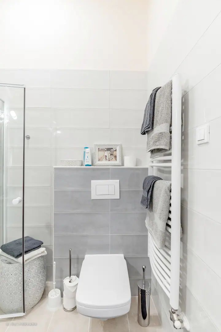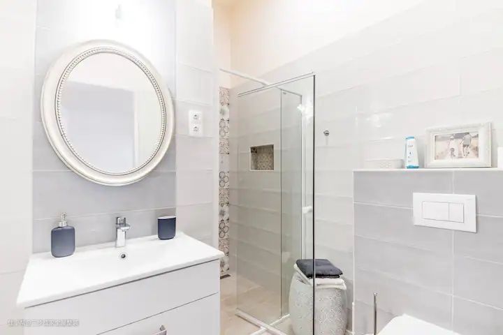 这个卫生间设计亮点在于干湿分离设计、淋浴区玻璃门隔开以及马桶和洗漱台对向设计。 卫生间采用干湿分离设计,这是当下非常流行的一种设计方式。这种设计方式将卫生间分为干燥区域和湿区域,使得卫生间的使用更加方便、舒适。其次,淋浴区单独用玻璃门隔开,这不仅实现了干湿分离,还让整个空间更加通透。玻璃门的设计也增加了现代感,让整个卫生间看起来更加时尚、大气。最后,马桶和洗漱台对向设计,这种布局方式让空间更加合理,使用起来也更加方便。同时,整屋白色系的搭配也让洗浴空间十分明亮、干净。