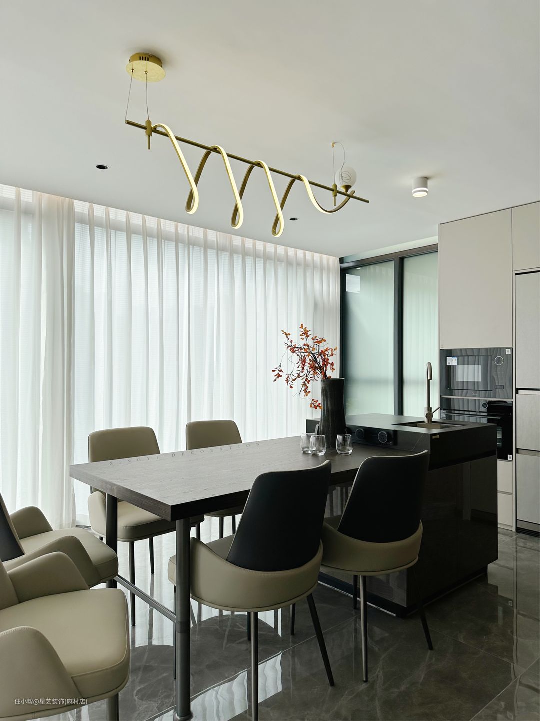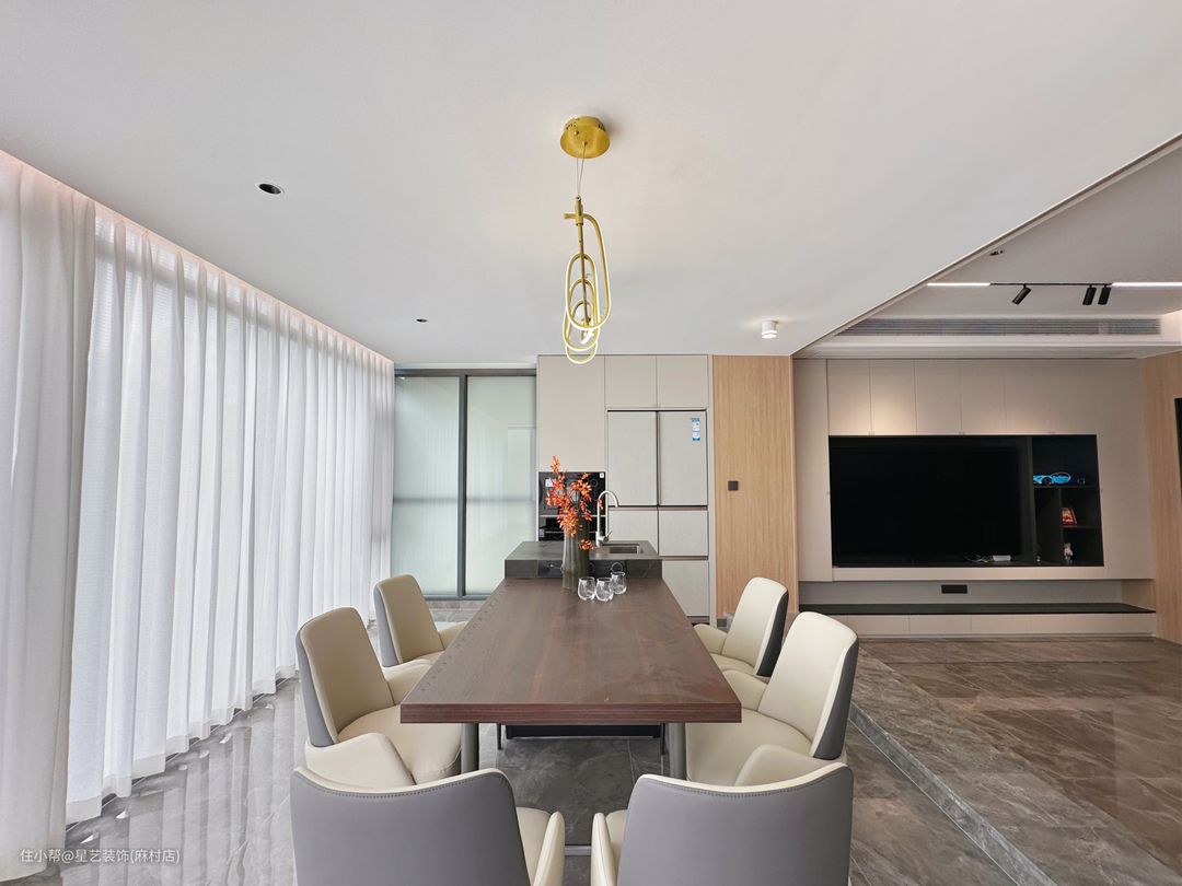 从客厅看向厨房,可以看穿整个空间,视野无阻,空间感觉更大、更宽敞,置身其中,感觉舒适自在。直接迎面采光的同时,亦可尽情享受窗外的自然景色。