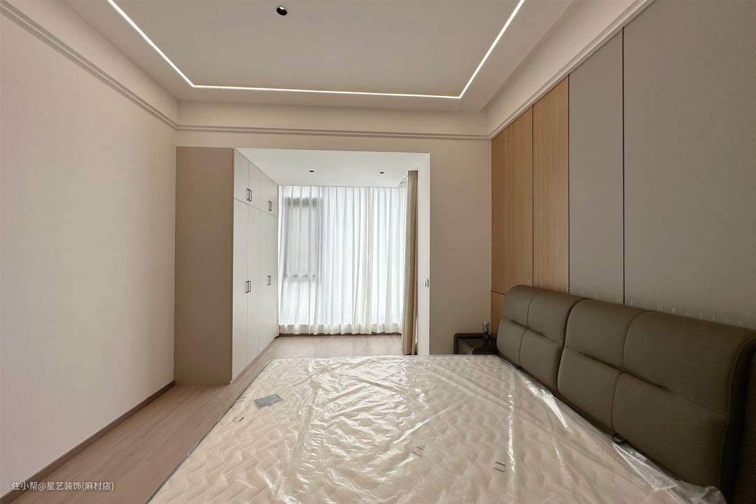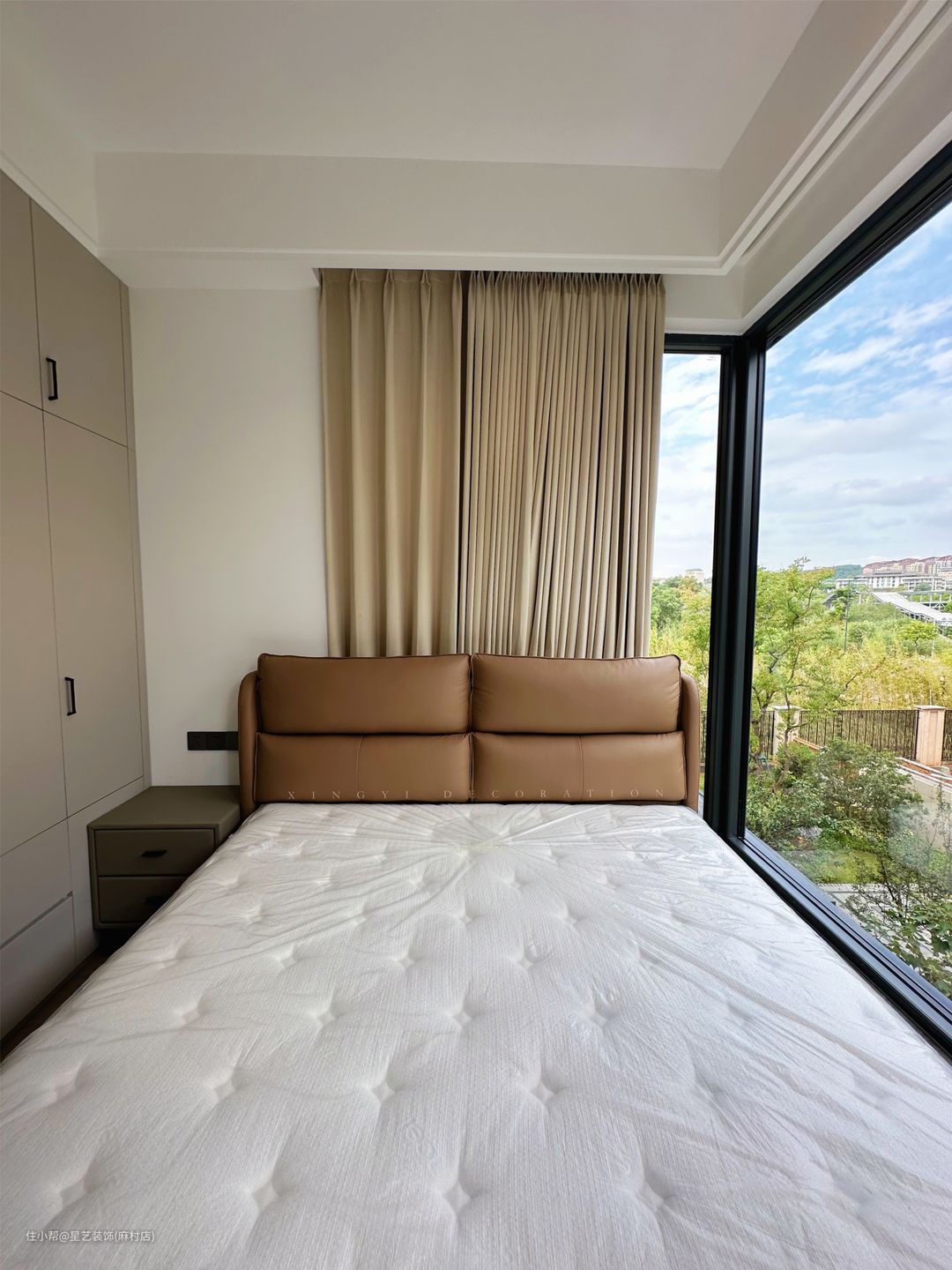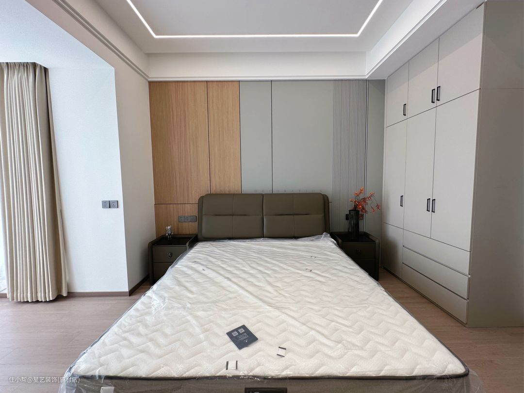 卧室精准的安排自然光和人造光交相呼应,去除一切繁冗的造型,让空间一气呵成,营造简洁、明亮、温馨、舒适的睡眠环境。