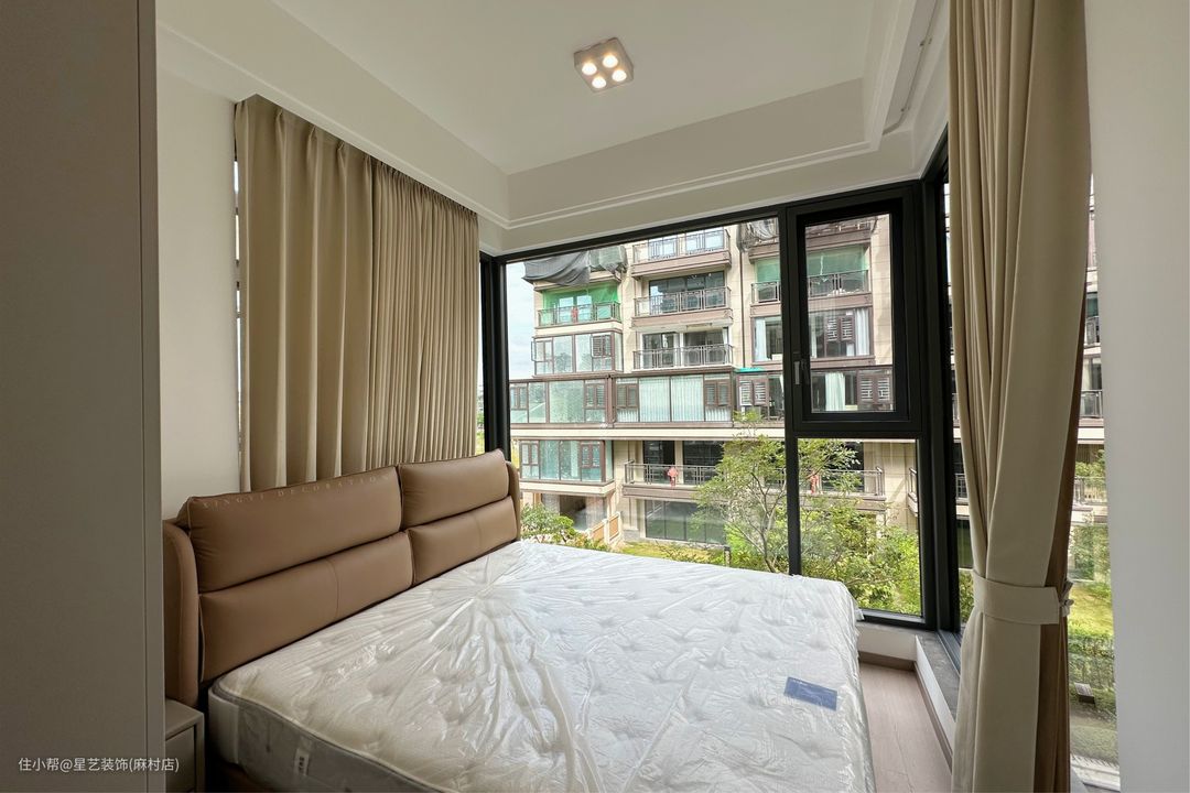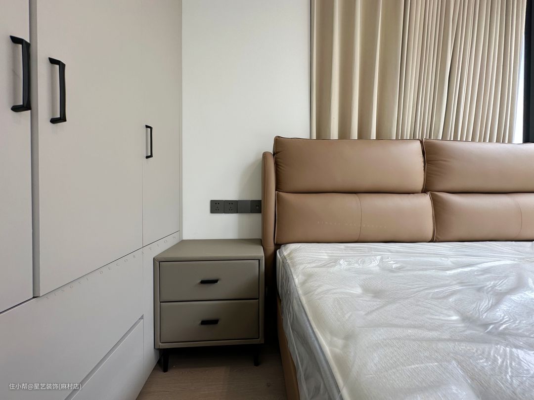卧室精准的安排自然光和人造光交相呼应,去除一切繁冗的造型,让空间一气呵成,营造简洁、明亮、温馨、舒适的睡眠环境。