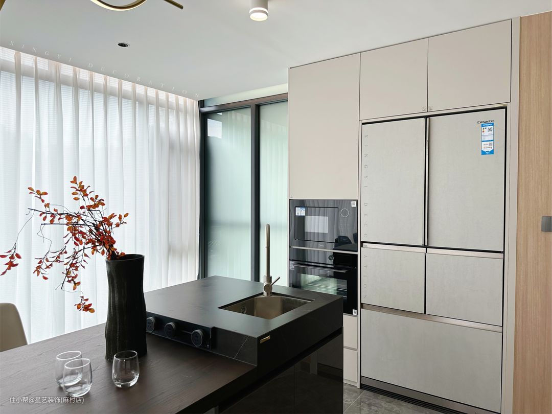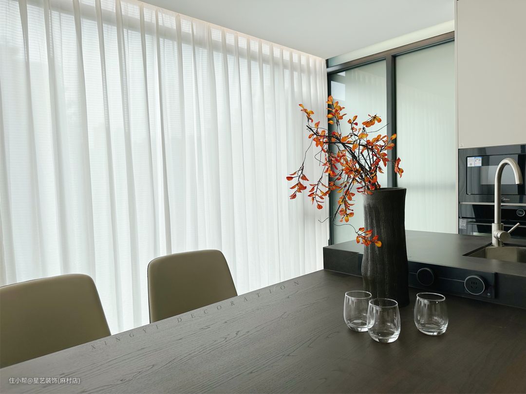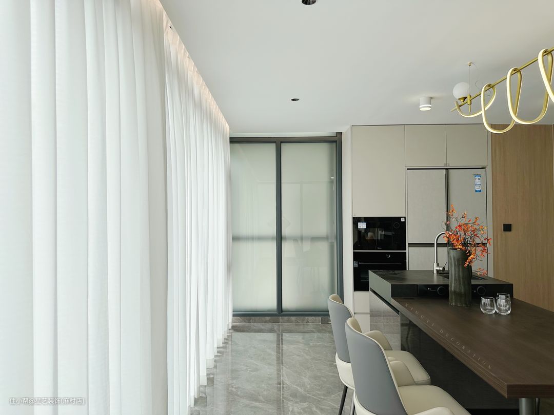 从客厅看向厨房,可以看穿整个空间,视野无阻,空间感觉更大、更宽敞,置身其中,感觉舒适自在。直接迎面采光的同时,亦可尽情享受窗外的自然景色。