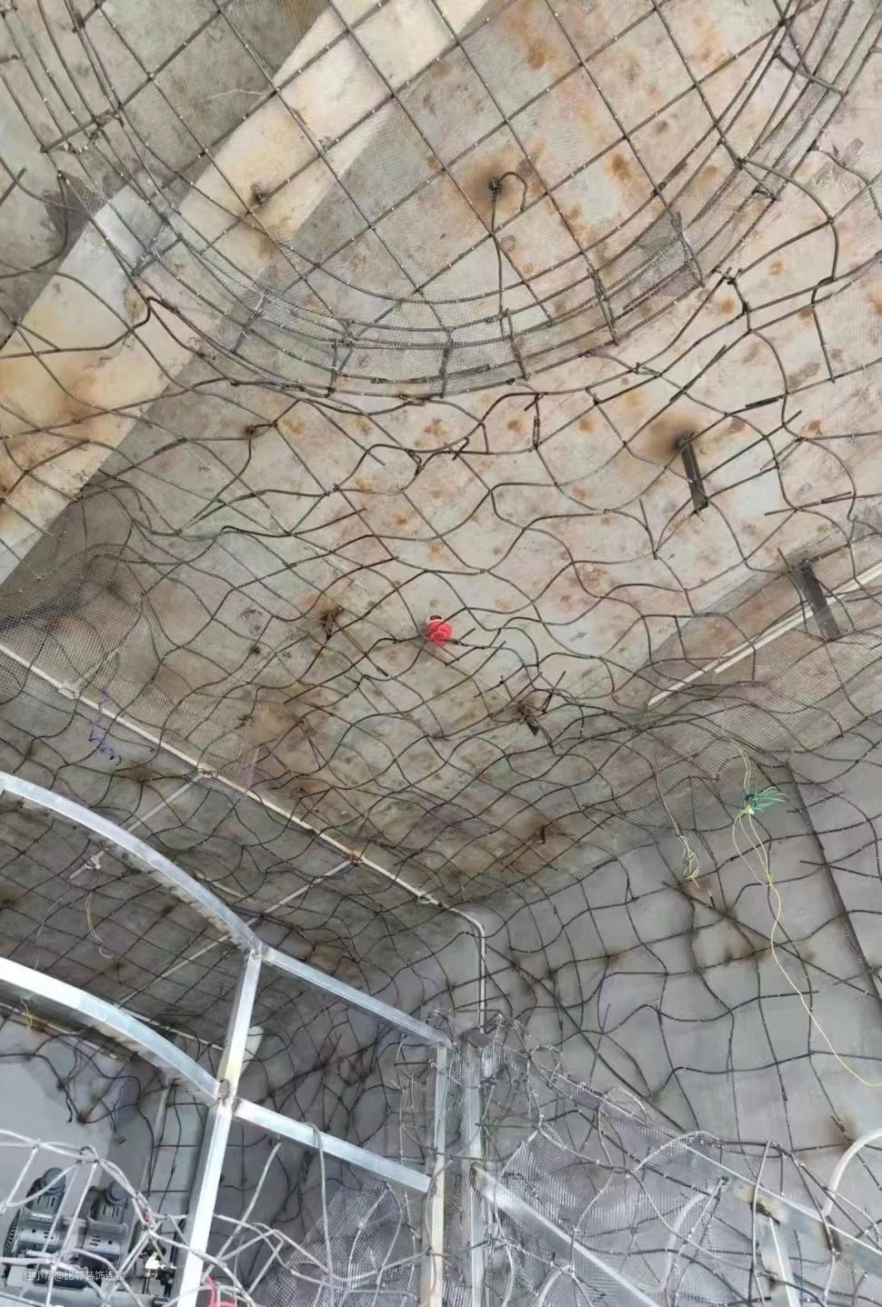 施工中:在施工的过程中我们会根据现场做出整体的设计定位洞穴的位置做骨架再预留好灯管线路的位置就可以进行围铁网和喷水泥砂浆做出纹理效果,2楼休息区也做了格局调整并增加了造型,再根据整体造型做了有弧度的护栏,最后在刷上肌理艺术漆,落地效果很赞。
