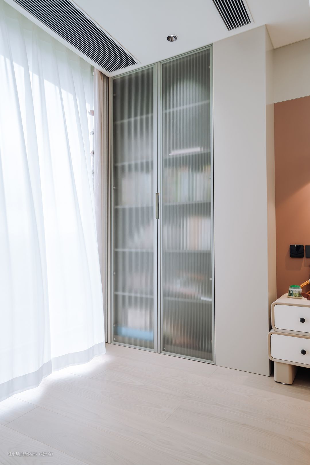 儿童房低饱和度奶白色+婴儿粉搭配,充满温馨可爱,低饱和度色调温柔耐看。一门到顶衣柜,安装反弹器开关,收纳和美观兼具。学习书桌和儿童椅配套,给孩子打造一个学习的空间。一体感更强,搭配童趣摆件更生动。硬装上简单利落,实用性很强,随着孩子的长大,保留空间的改造可能。