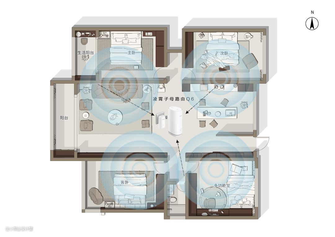 所以一部稳定的路由器就显得至关重要了。我推荐安装华为凌霄子母路由 Q6,非常适合大宅结构的户型,哪里信号弱,就插一个子路由,最多能1拖15,解决了各角落网络不好的问题。