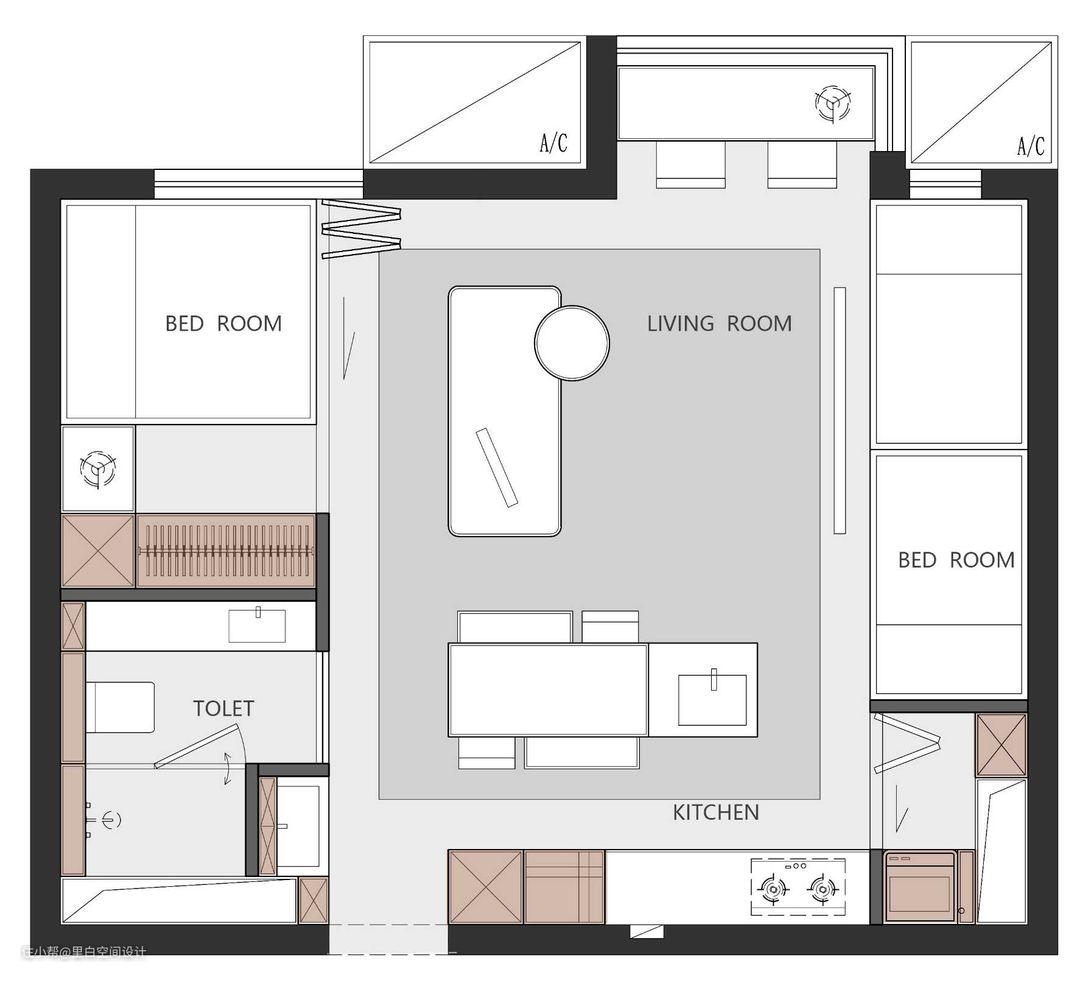 如果套内45m²要做三卧一厅,空间是不是就更挤了?我们的答案是不会。 这是前不久刚毕业的一套北京西城学区房改造,业主夫妇将和女儿、儿子在这度过至少6年的时光,这套房自然也会陪伴两个小朋友最重要的成长阶段。 房子是个典型的方正一居室,小得非常明显:站在门口,一眼到头,手机内短短20s的视频,几乎能展示房子的全部空间。要住下业主一家四口,两个小朋友还需要有各自的私密空间,一卧扩三卧是刚需诉求,夫妻俩也希望公区能够宽敞一点,一家人能聚在一起多些互动。 如何平衡好四口人的居住尺度,放下三间卧室,是本案平面配置的难点。